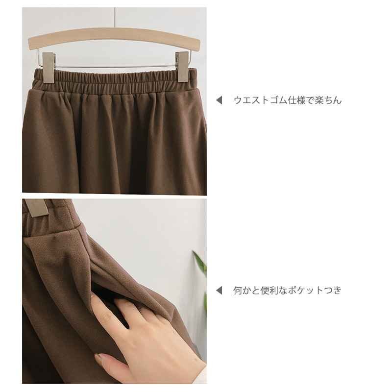 ・シンプルなデザインで着回し抜群。ウエストゴム仕様で楽ちん。