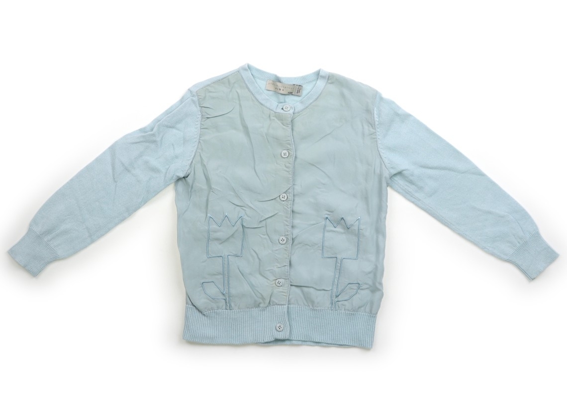 4YEARSサイズ表記。品質タグの表示が薄くなっています。本体は薄いニット地で、毛羽立ちあり。前面のみ布帛地の2枚重ねで、シワ・お腹付近に黄色シミがあります。