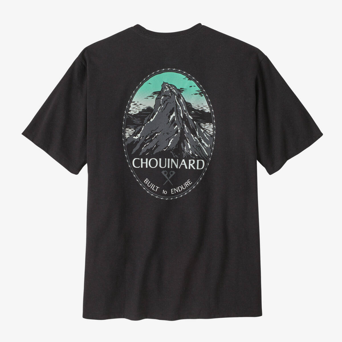 パタゴニア初期のクラシックなグラフィックをグラデーションのカラーで仕上げたシュイナード・クレスト・ポケット・レスポンシビリティー。このTシャツは 端切れと回収されたペットボトルをリサイクルした素材を使用し、バージン原料への依存を削減。フェアトレード・サーティファイドの工場で製造