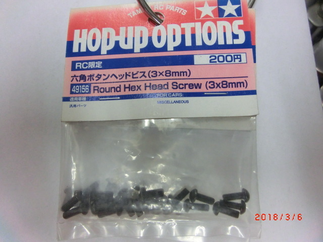 タミヤ 49156 RC限定 六角ボタンヘッドビス 3×8mm 定価¥200(税別)