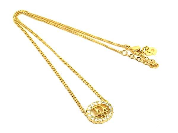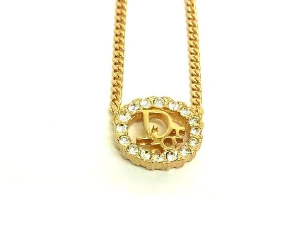 1円 ■美品■ ChristianDior クリスチャンディオール ラインストーン ネックレス ペンダント アクセサリー レディース ゴールド系 FT1182