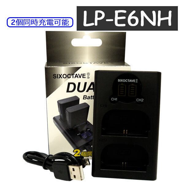 LP-E6NH LP-E6N LP-E6 Canon キャノン 互換デュアルUSB充電器 純正バッテリーも充電可能 XC15 EOS 90D EOS R EOS 5DS EOS 80D EOS 6D