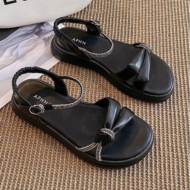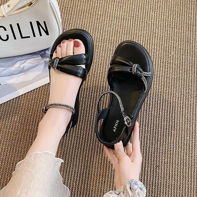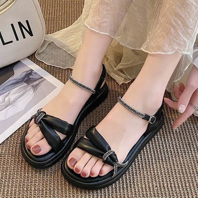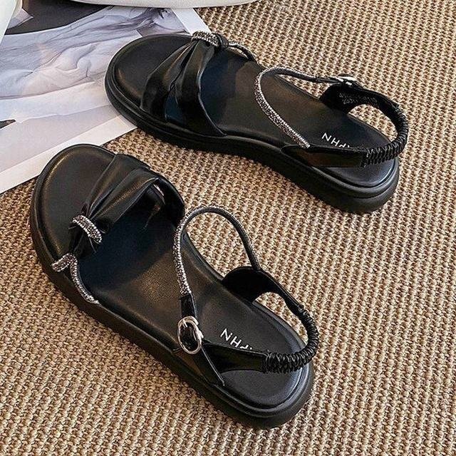 ビーチサンダル サンダル ぺたんこ レディース ローマブール フラットソール 歩きやすい おしゃれ サマー 夏コーデ ブラック 23cm