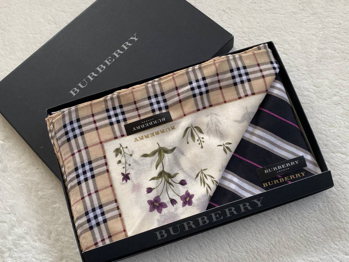 新品【バーバリー】 ハンカチ2枚 [ブルーミング中西] 花柄のハンカチには全体に織柄が入っております 箱なし発送のみとさせていただきます ご了承ください ★サイズ 約49cm角 ★品質 綿100% |