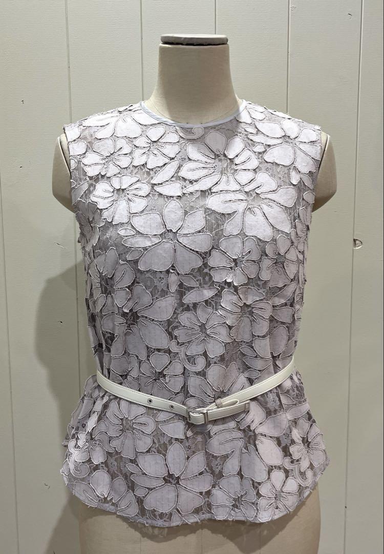 【商品名】タグ付き未使用品 シェリーレースブラウス M くすみピンク ベルト付