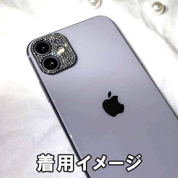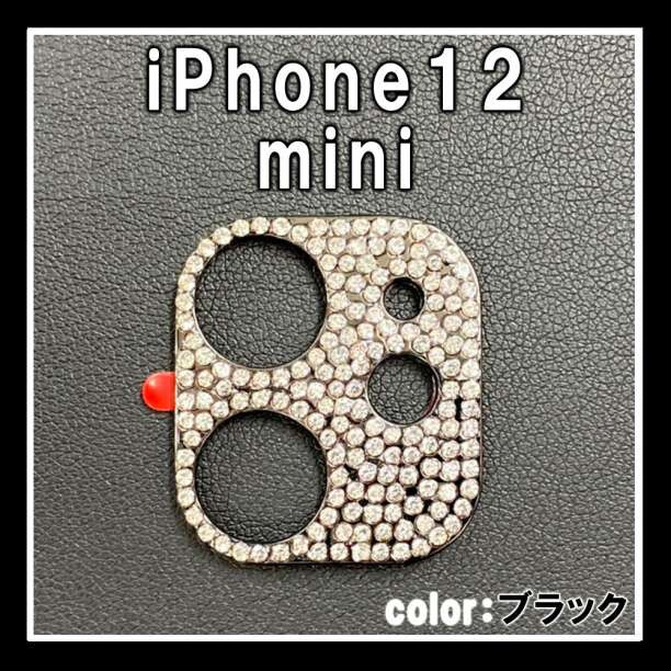 iPhone12mini カメラ保護フィルム ラインストーン デコ 黒 S
