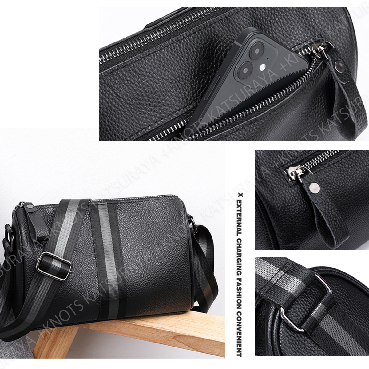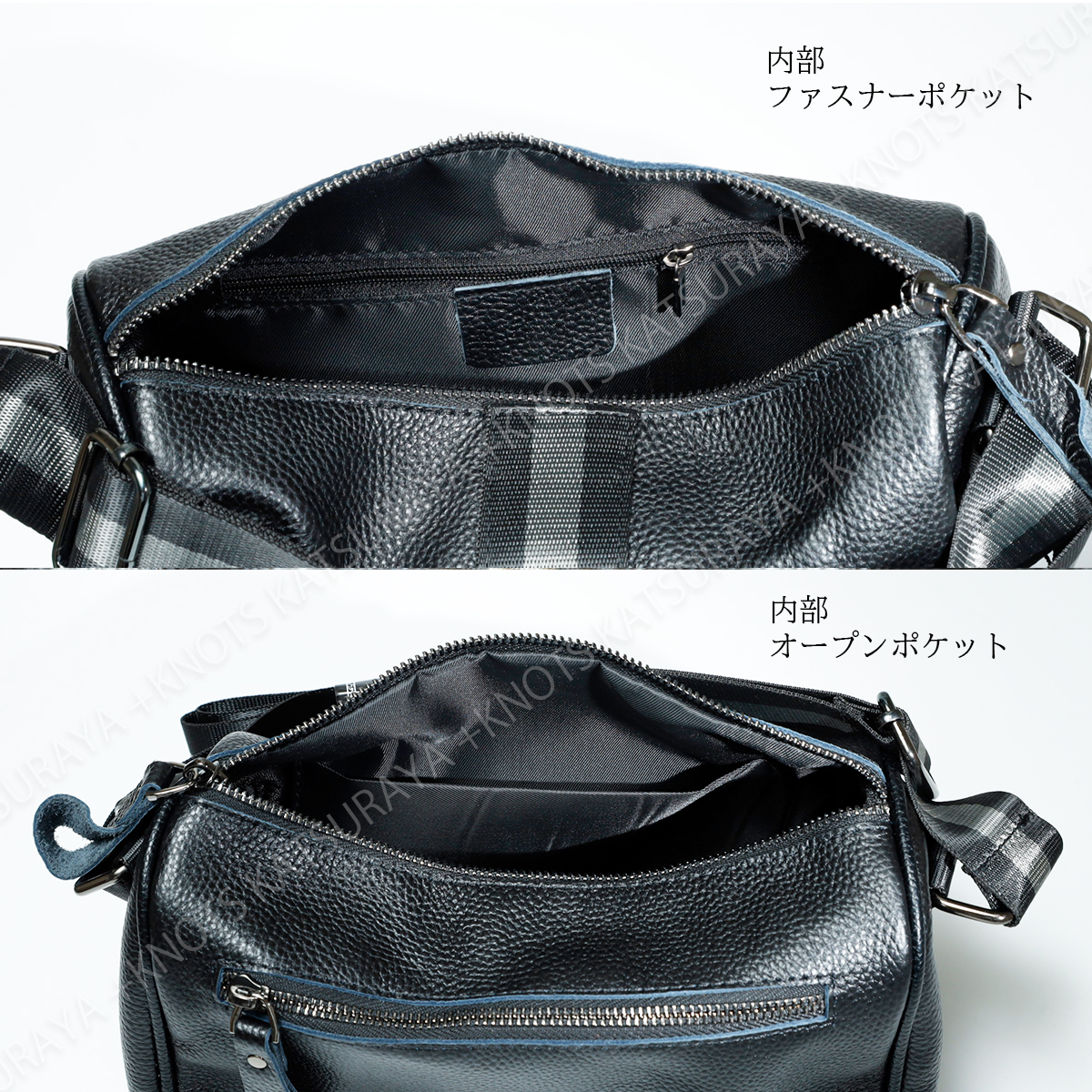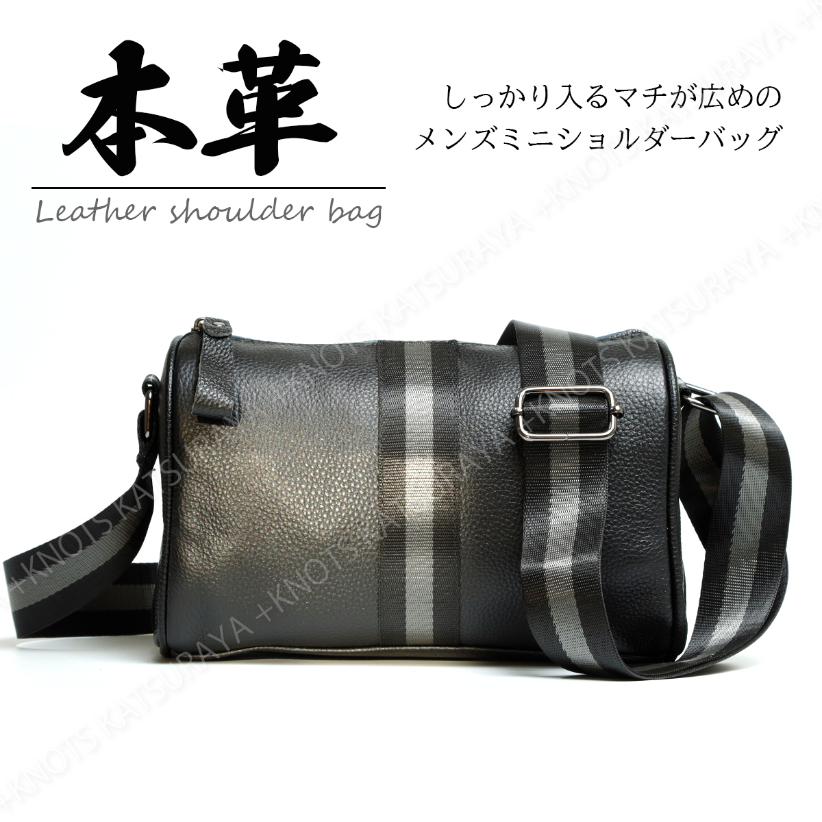 広めのマチで厚めの荷物も収まる小型のメンズショルダーバッグです。キズや汚れが目立ちにくいシボのある滑らかな本革を採用しました。紐幅3.7cmと広めなので方への負担を軽減します。後ろ側にもファスナーポケットを備え貴重品などの収納に重宝します。シンプルなマチ広めのミニショルダーバッグをお探しの方、世代問わずおすすめです。