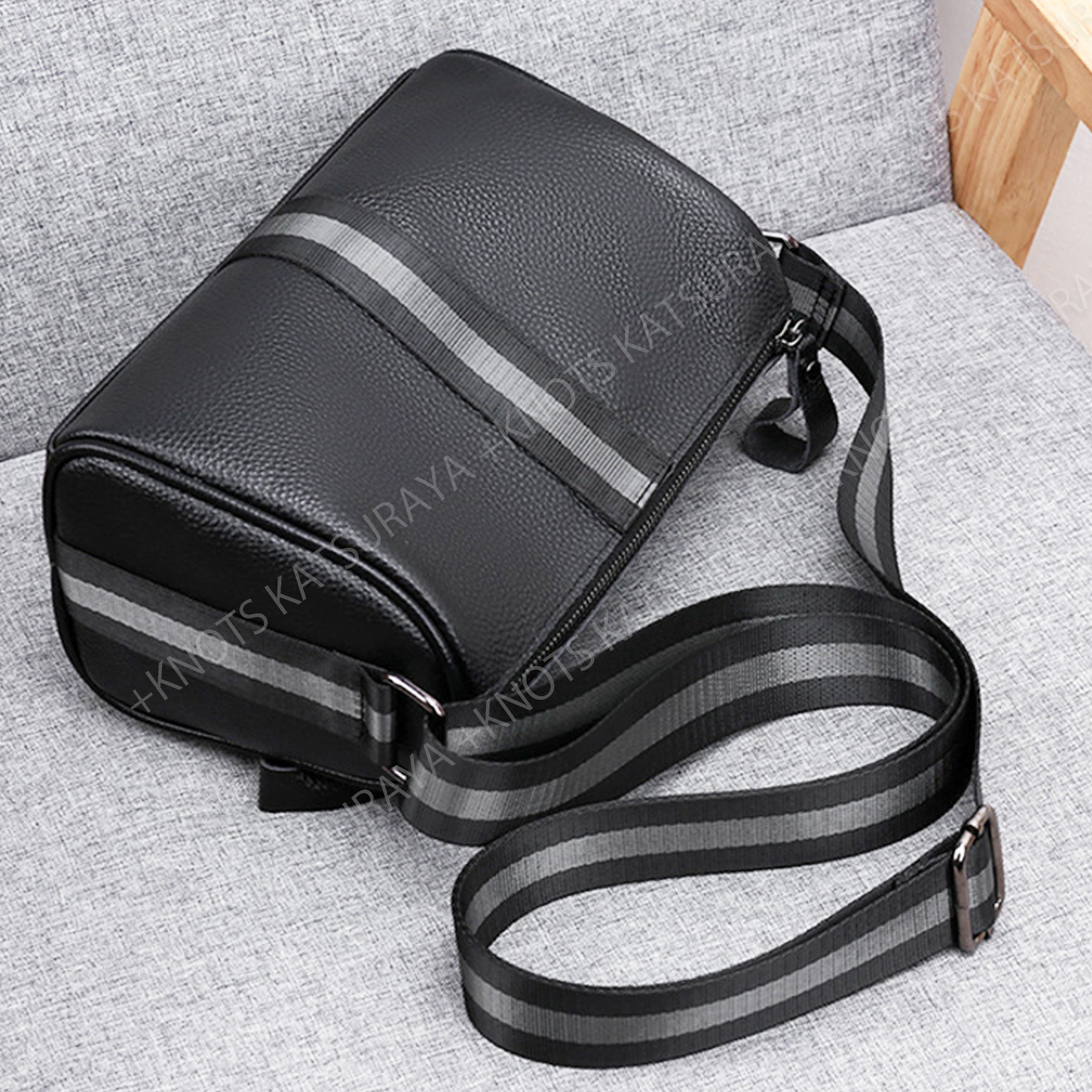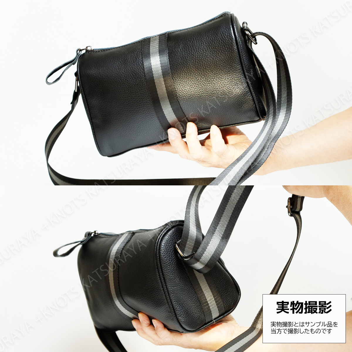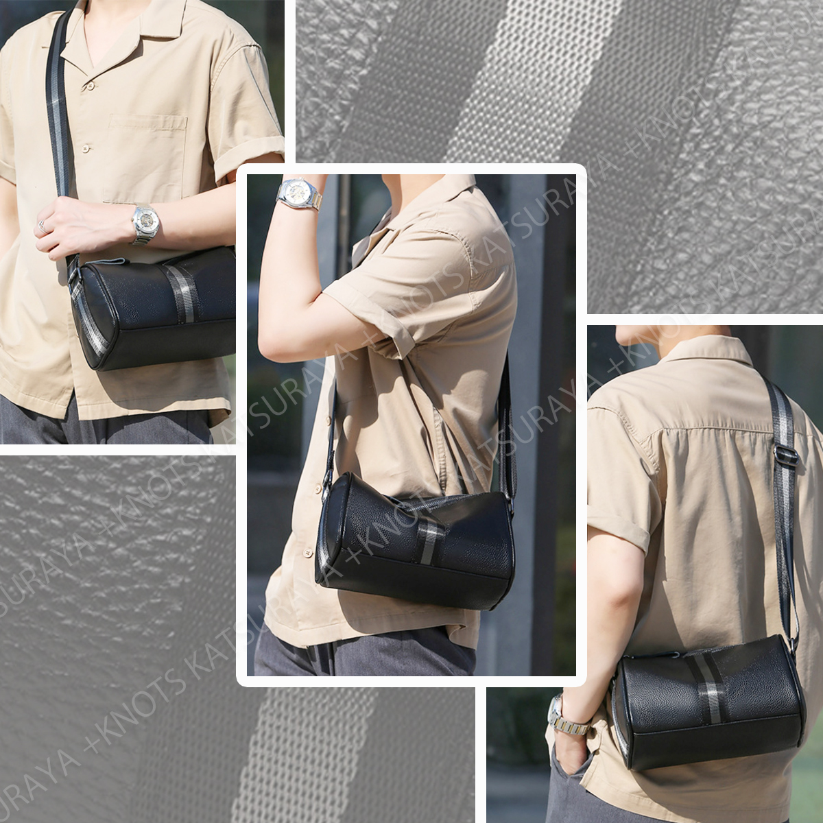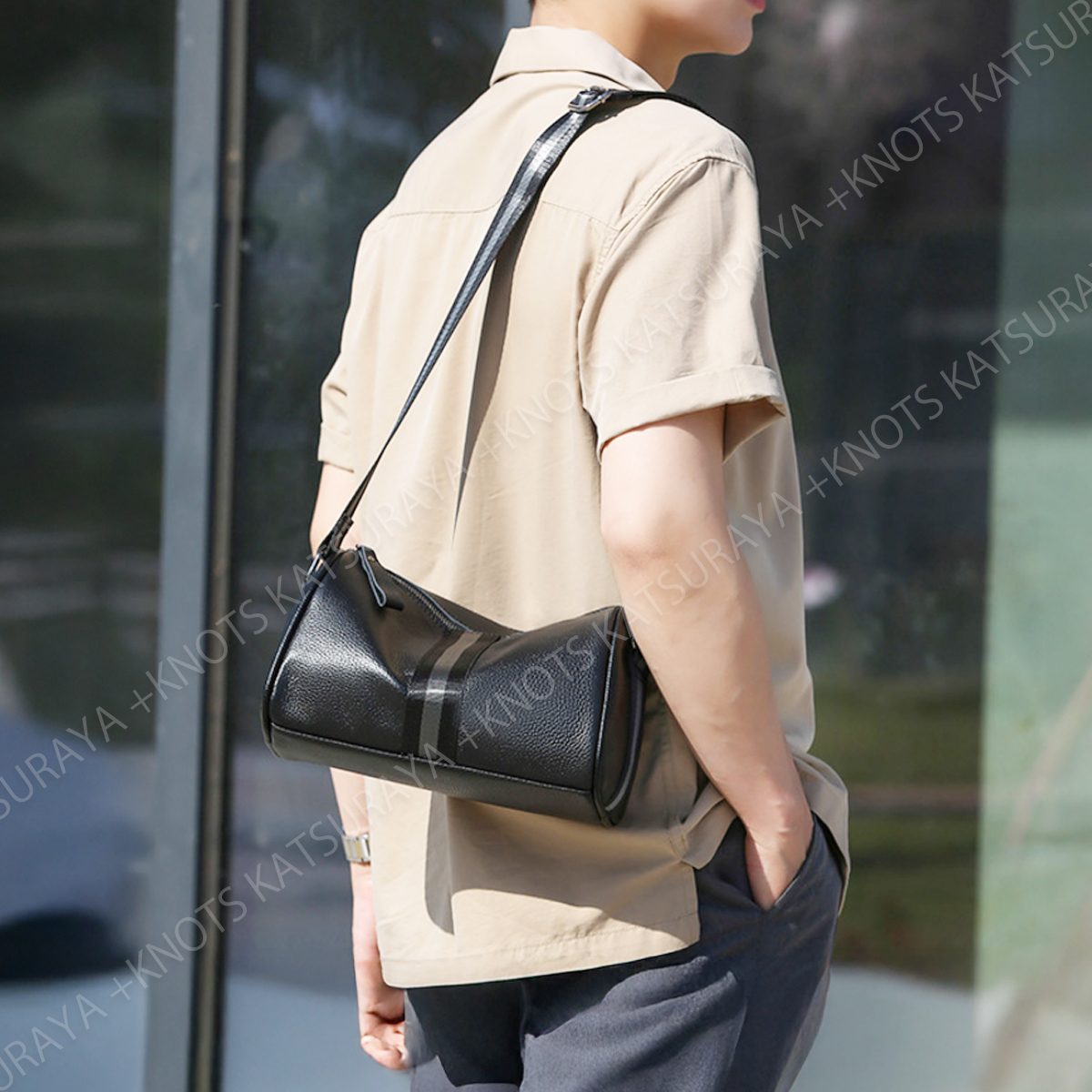 広めのマチで厚めの荷物も収まる小型のメンズショルダーバッグです。キズや汚れが目立ちにくいシボのある滑らかな本革を採用しました。紐幅3.7cmと広めなので方への負担を軽減します。後ろ側にもファスナーポケットを備え貴重品などの収納に重宝します。シンプルなマチ広めのミニショルダーバッグをお探しの方、世代問わずおすすめです。