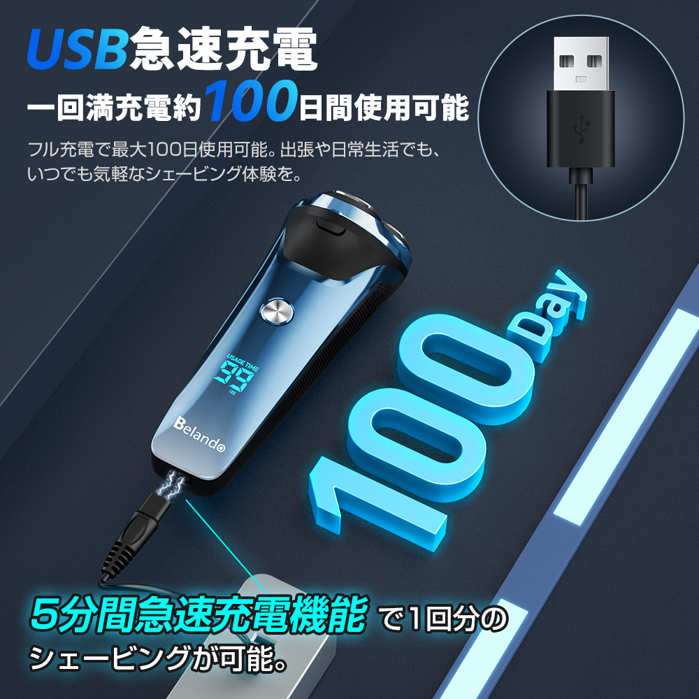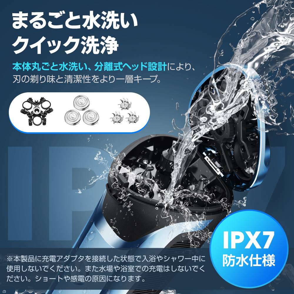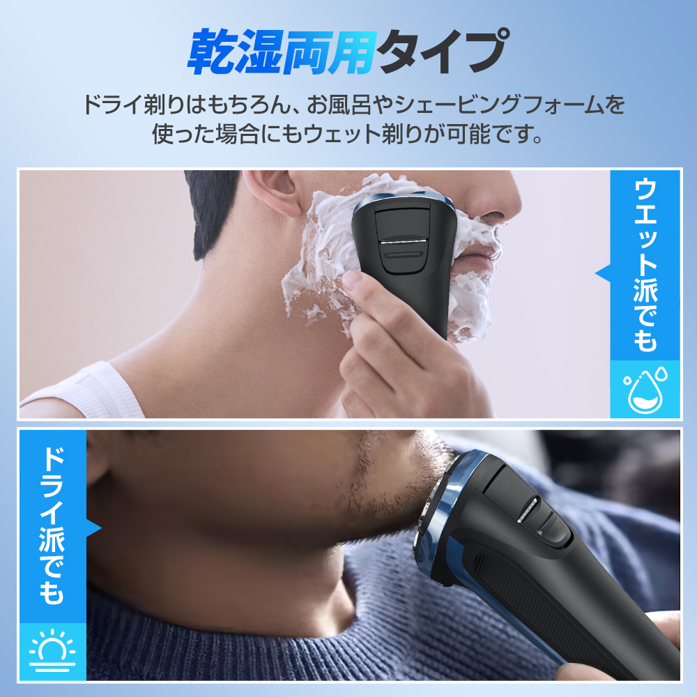 メンズシェーバー 髭剃り 電気シェーバー 3枚刃 シェーバー 回転式 ネイビー
