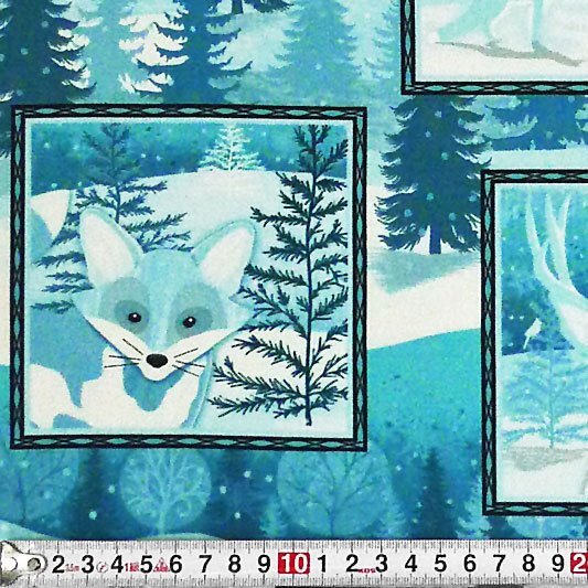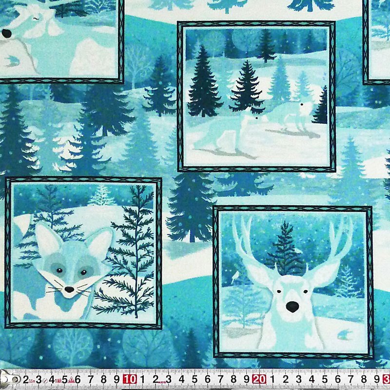 雪の森の風景を背景に森の動物のフォトフレームを並べています。アクアブルー系のグラデーションの色使いがキレイです。