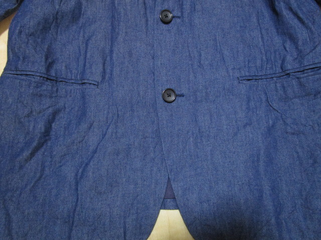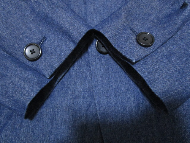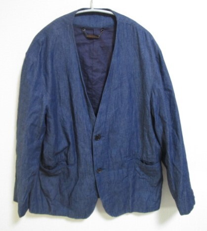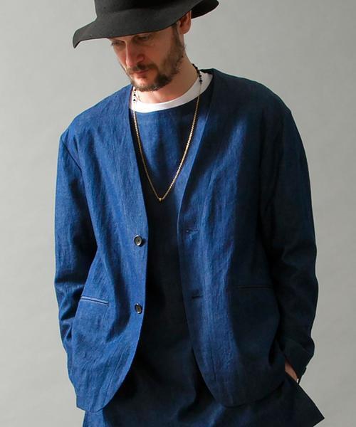 ★商品説明★ | 4.5オンスの清涼感のある軽やかなライトオンスデニムを使用したカーディガン風のノーカラージャケット☆通常の襟付きジャケットとは違い、適度なリラックス感を生むどこか”和”テイストを感じられるアイテムです♪肩はドロップさせて◎定価20900円のアイテム☆表記サイズはM平置き、肩幅約49cm、身幅脇下約54cm、着丈(背面、襟下から)約65㎝,袖丈約56㎝です。(素人寸)。 これからのお品だと思います。 |