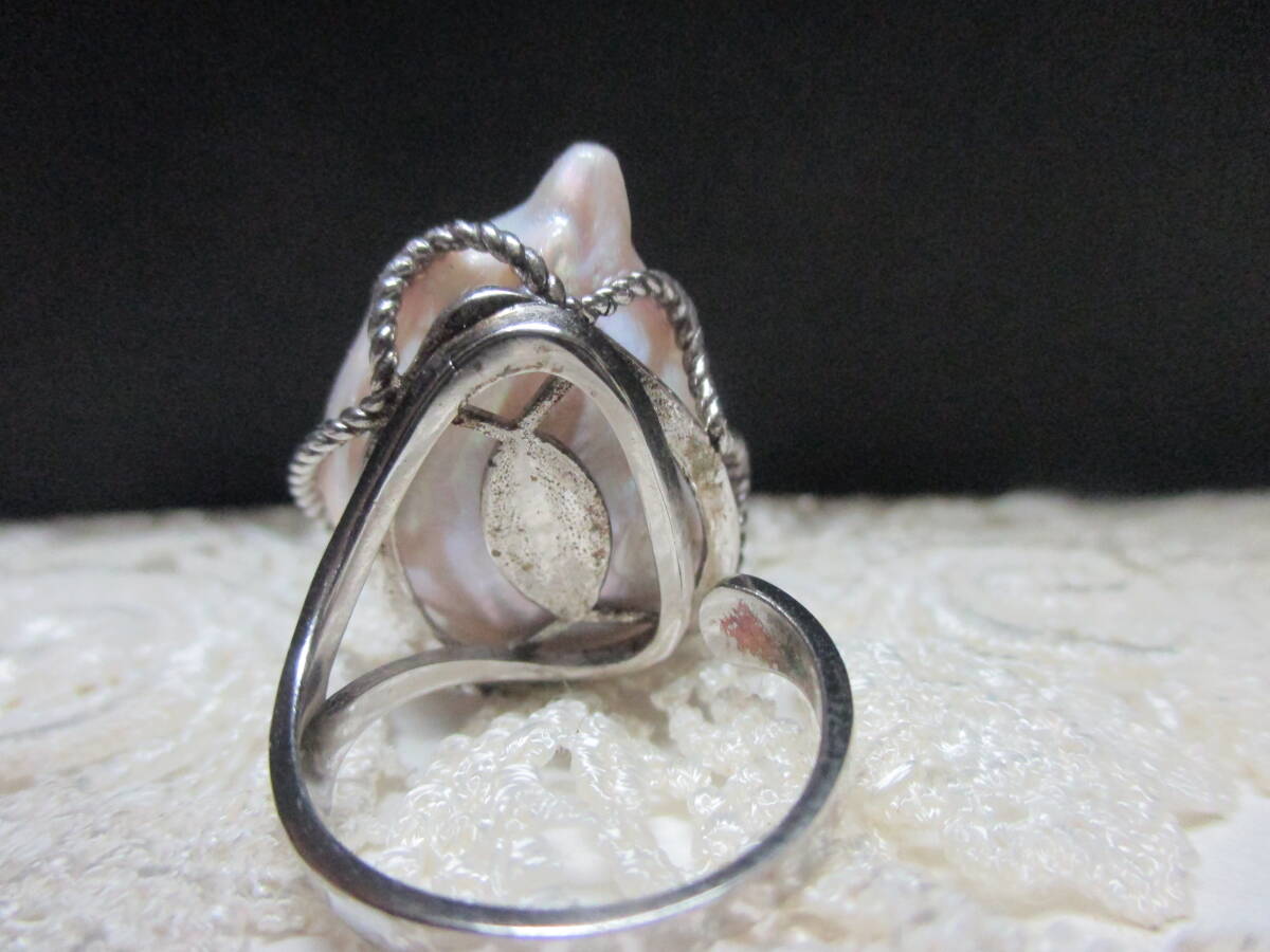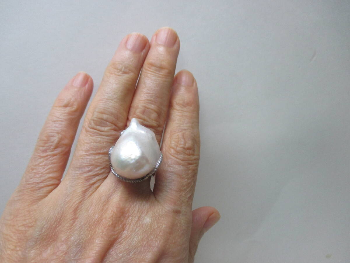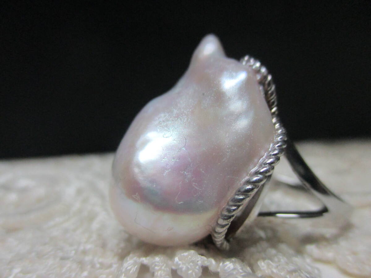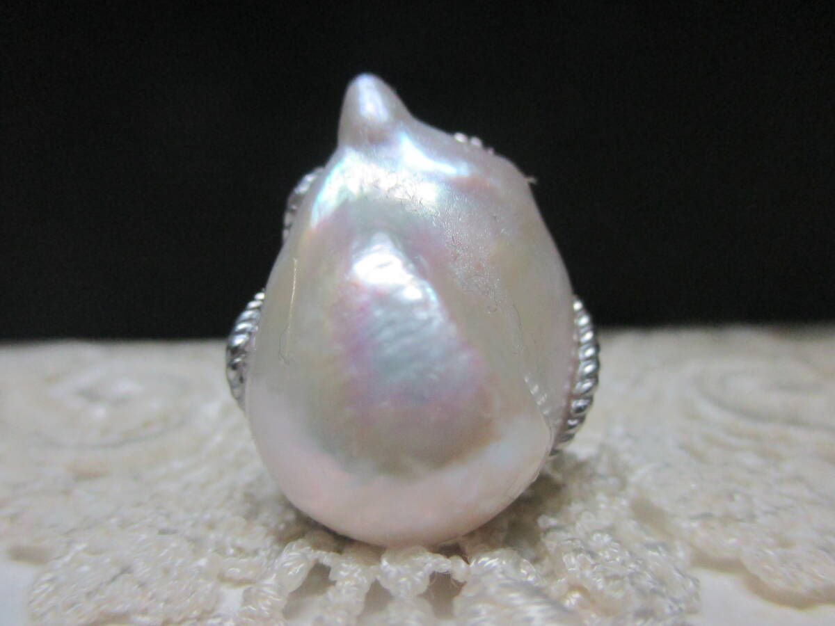 メッキではなく925刻印あり★新品 テリ艶いい本銀新品南洋バロックホワイト★ラージ調節可リング♪ココシュニックete好きにも