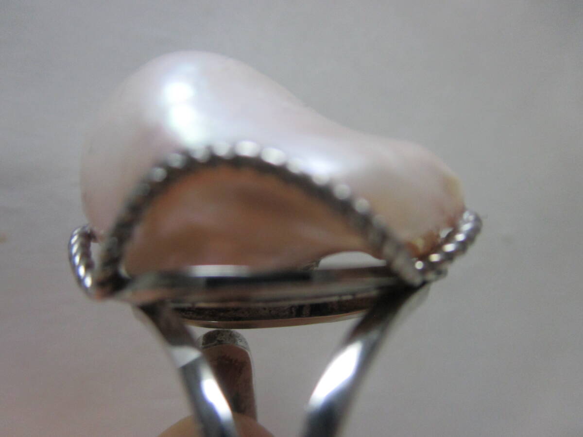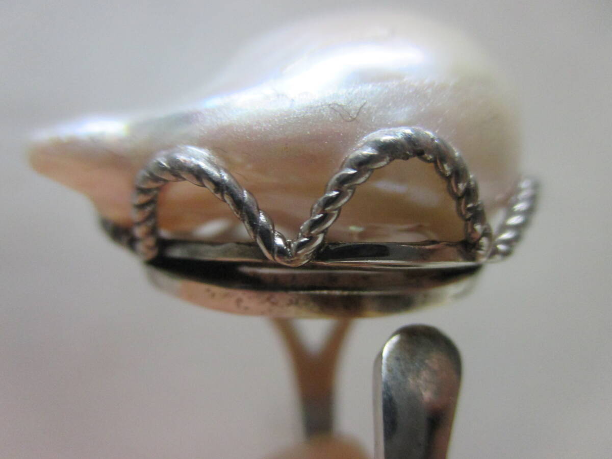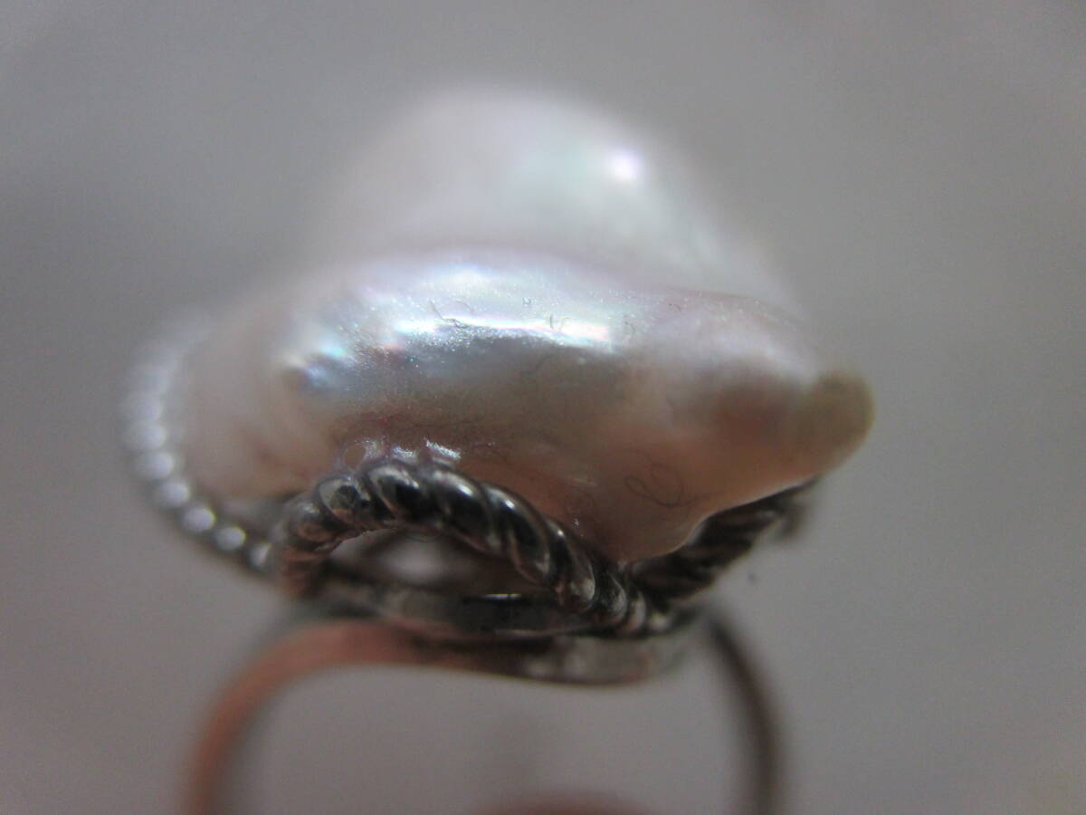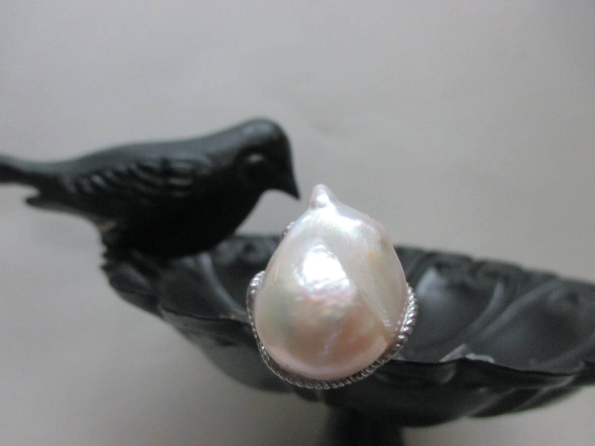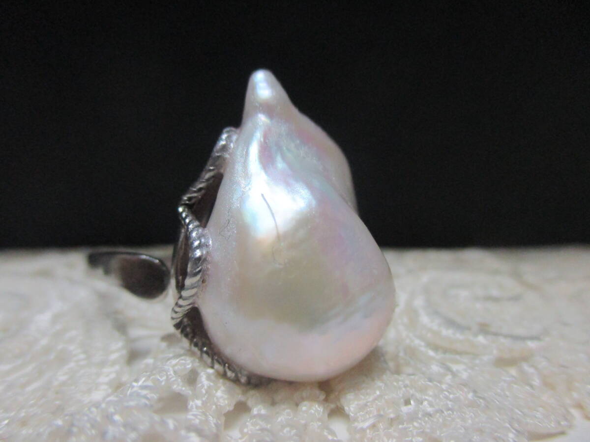 メッキではなく925刻印あり★新品 テリ艶いい本銀新品南洋バロックホワイト★ラージ調節可リング♪ココシュニックete好きにも