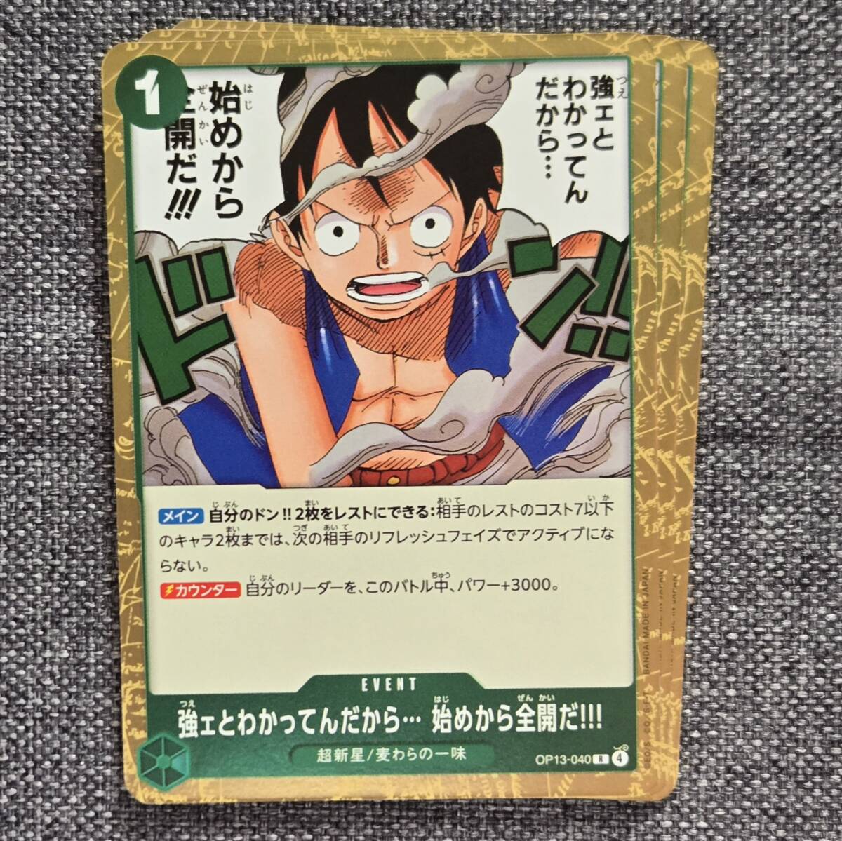 ONE PIECEカード~受け継がれる意志~強ェとわかってんだから…始めから全開だ!!!【R】(OP13-040)3枚セット