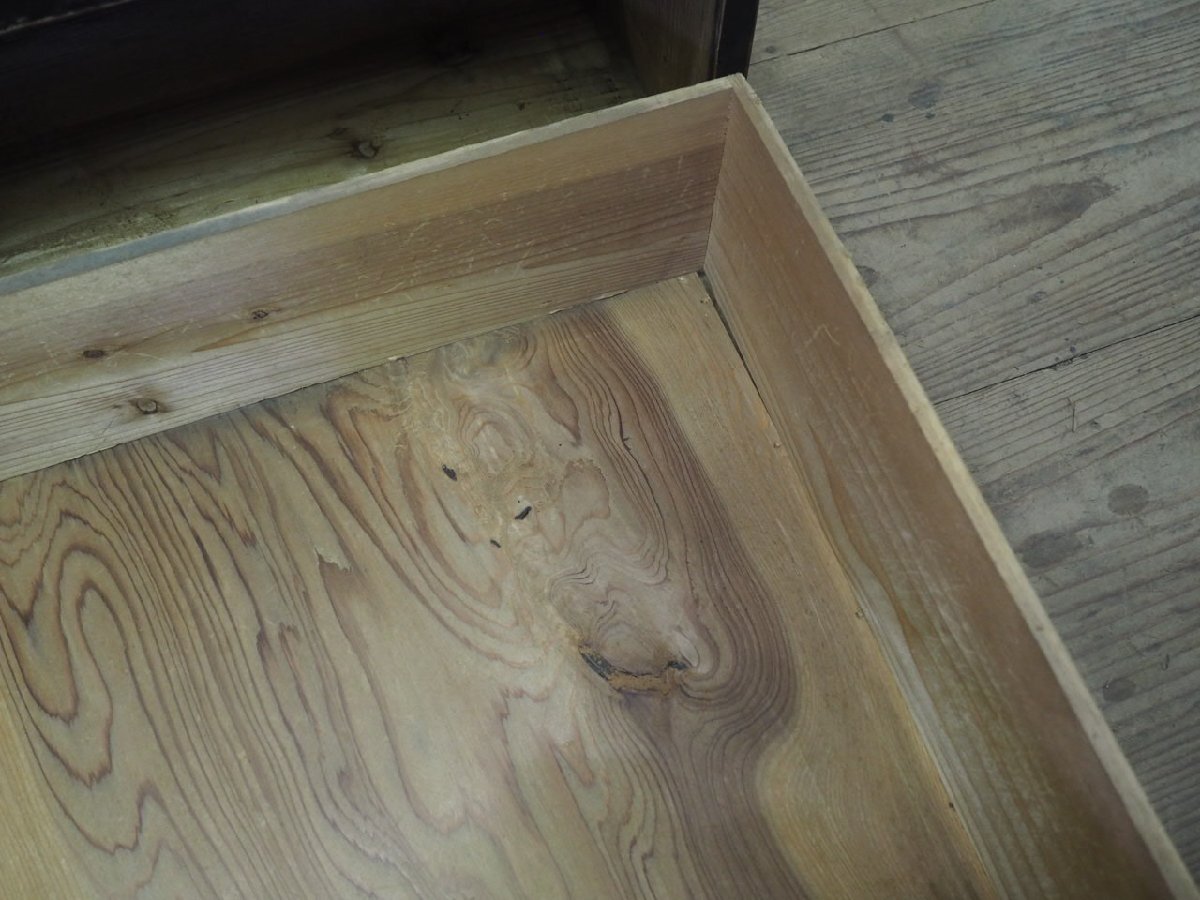 側面や引き出しに古い補修、塗装の剥がれ等がありますが、使用には問題ありません。