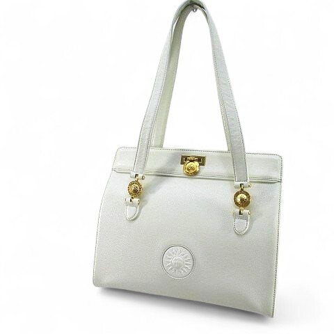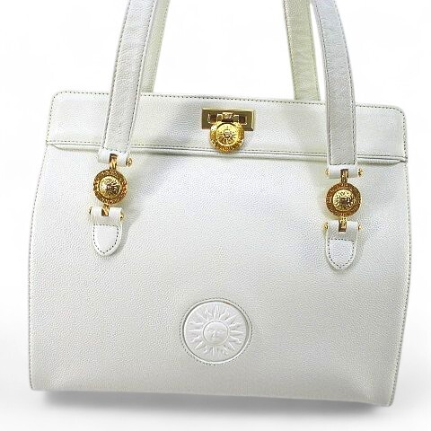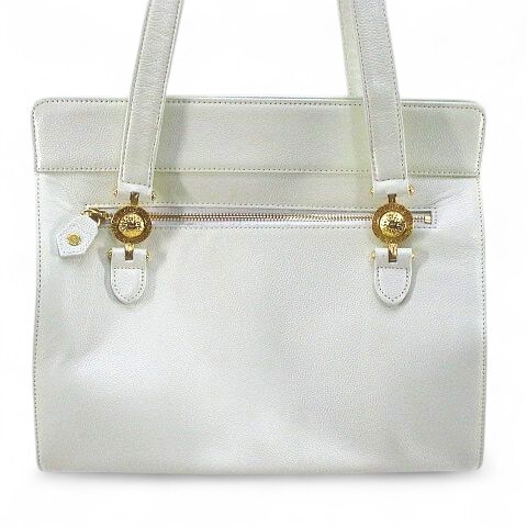 ジャンニヴェルサーチ ヴェルサーチェ GIANNI VERSACE トートバッグ セミショルダー メデューサ ゴールド金具 ホワイト 白系 レザー レディース