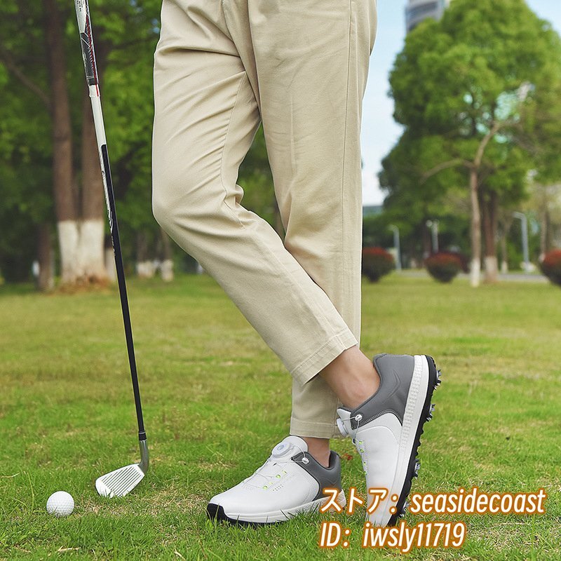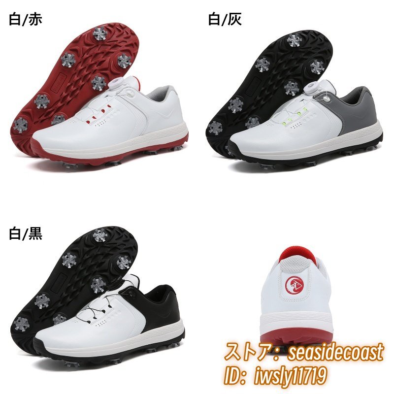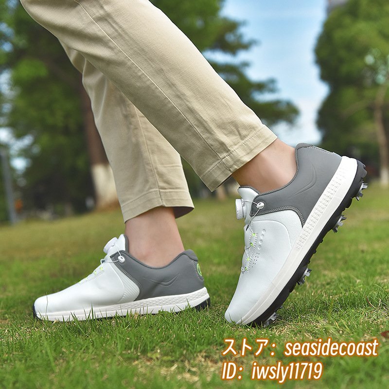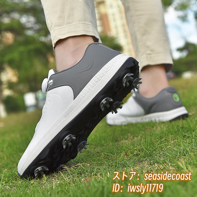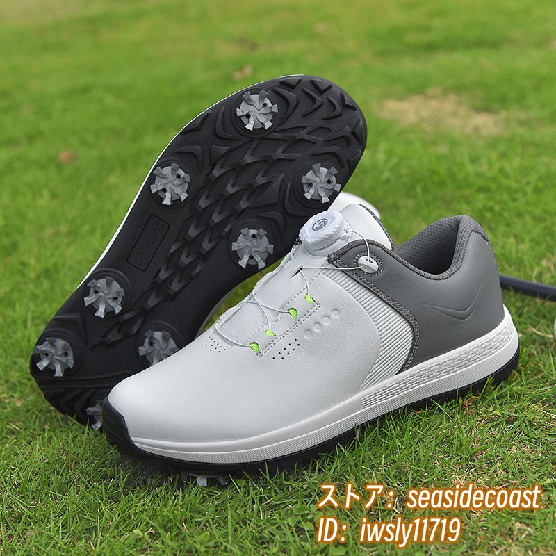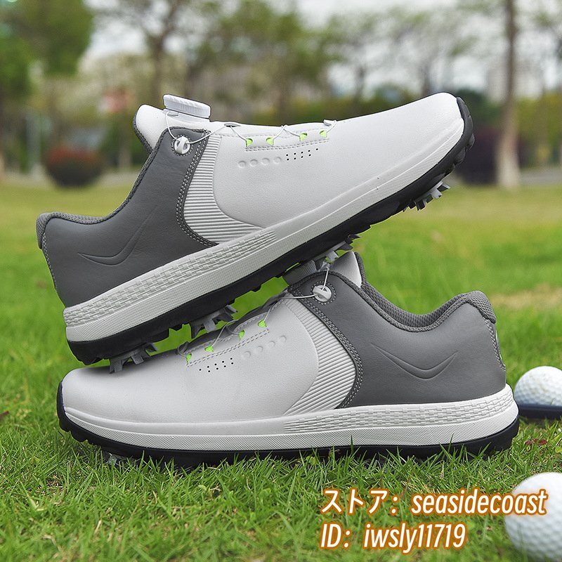 高級品 ゴルフシューズ 強いグリップ ソフトスパイク 運動靴 フィット感 軽量スポーツシューズ 新品 弾力性 通気性 防滑 耐磨 白/灰 25.5cm