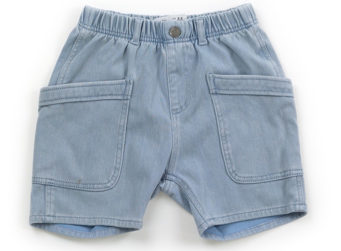 実際のサイズ表記は98cm。品質タグが切られています。素材不明。やや伸縮性のあるデニム生地です。全体に使用感はありますがまだお使いいただけそうです。