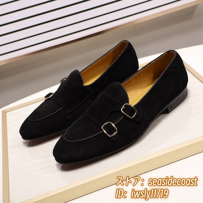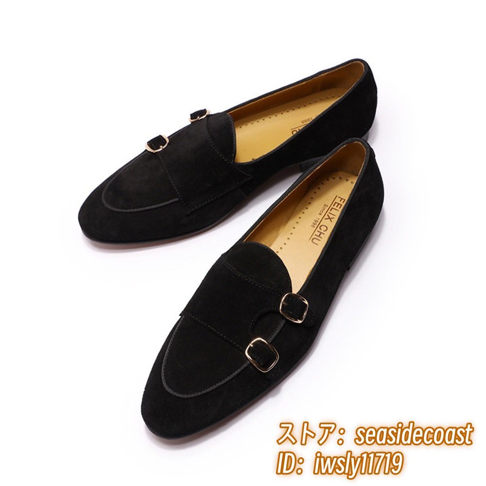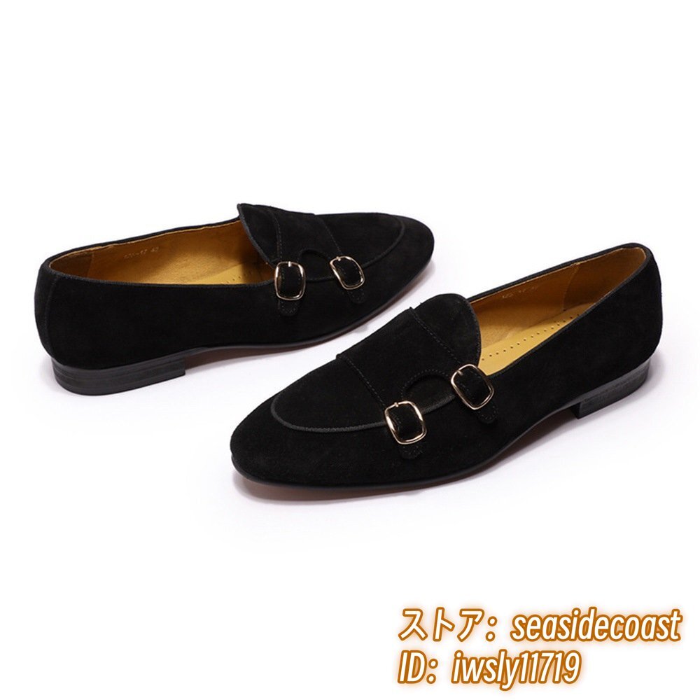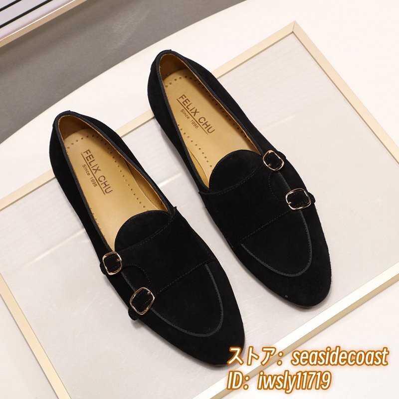 最高級◆定価9万 本革 ローファー 牛革 レザーシューズ モンクストラップ ビジネスシューズ 職人手作り スリッポン 革靴 紳士靴 黒 25.5cm