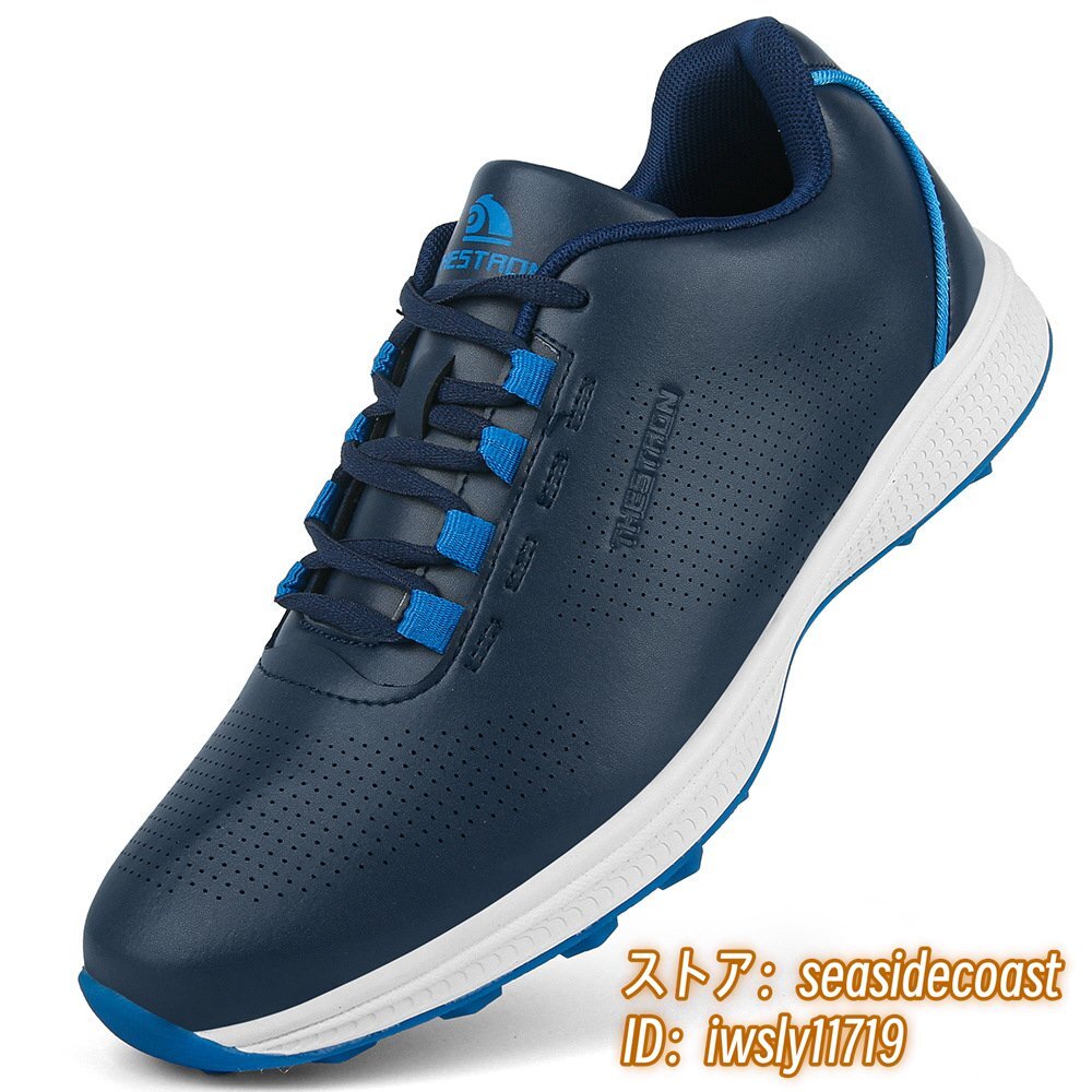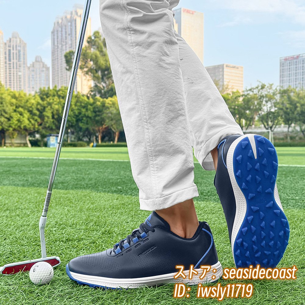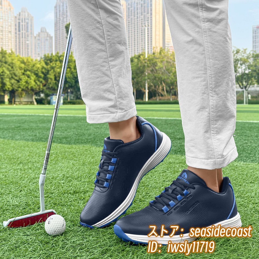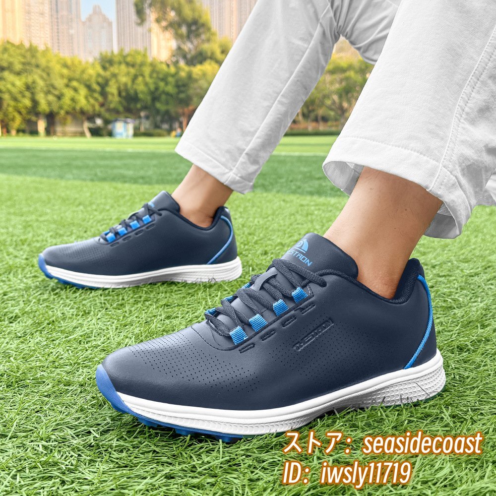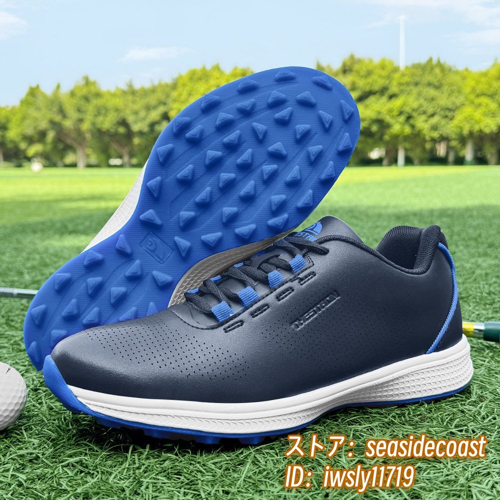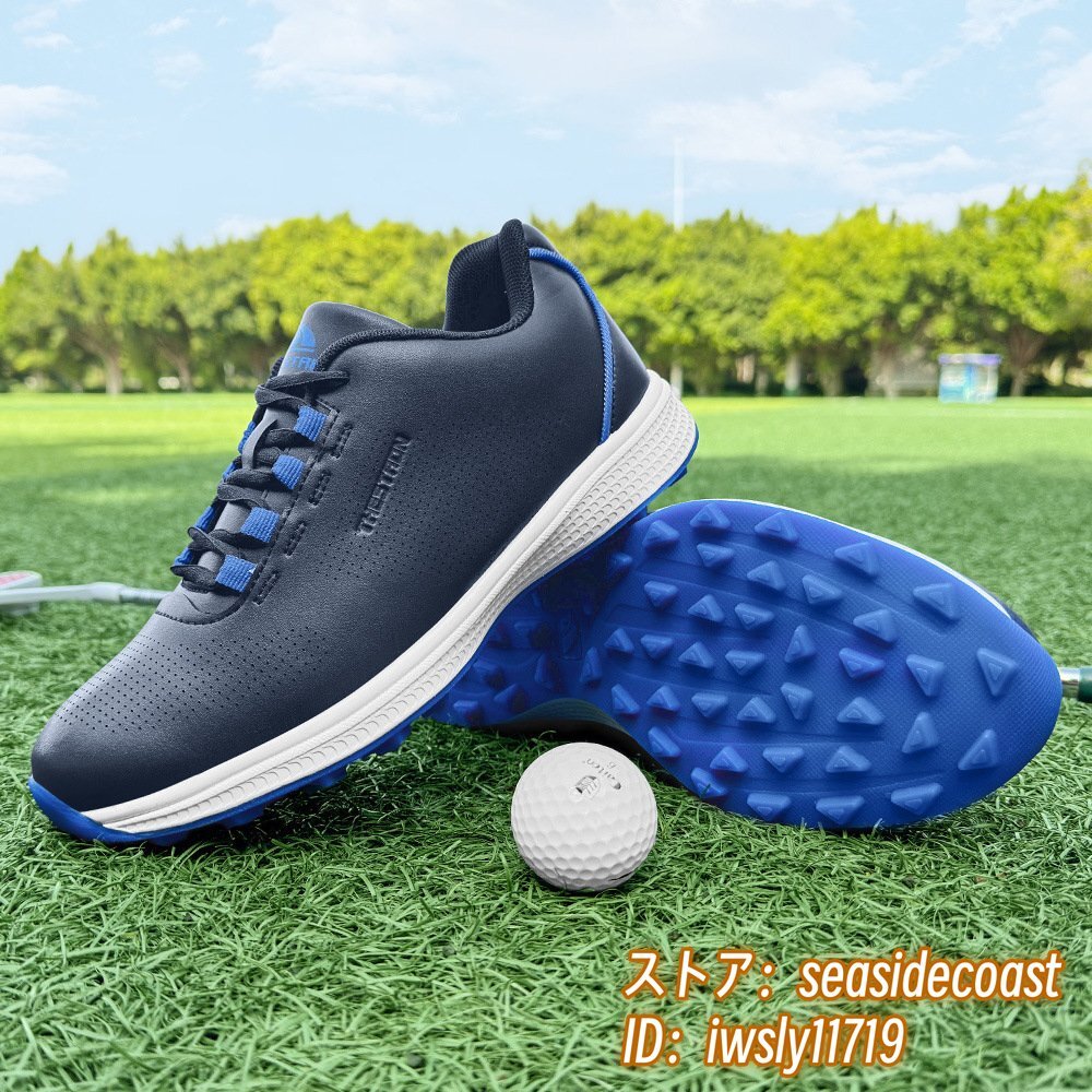 絶賛◆新品 ゴルフシューズ 通気性 スポーツシューズ メンズ 男女兼用 運動靴 耐久性 スニーカー フィット感 防滑 耐磨 ネイビー 26.5cm