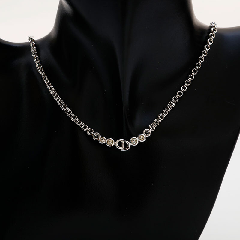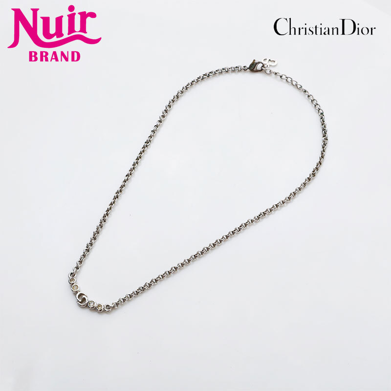 クリスチャンディオール Christian Dior ネックレス CDロゴ ラインストーン シルバー