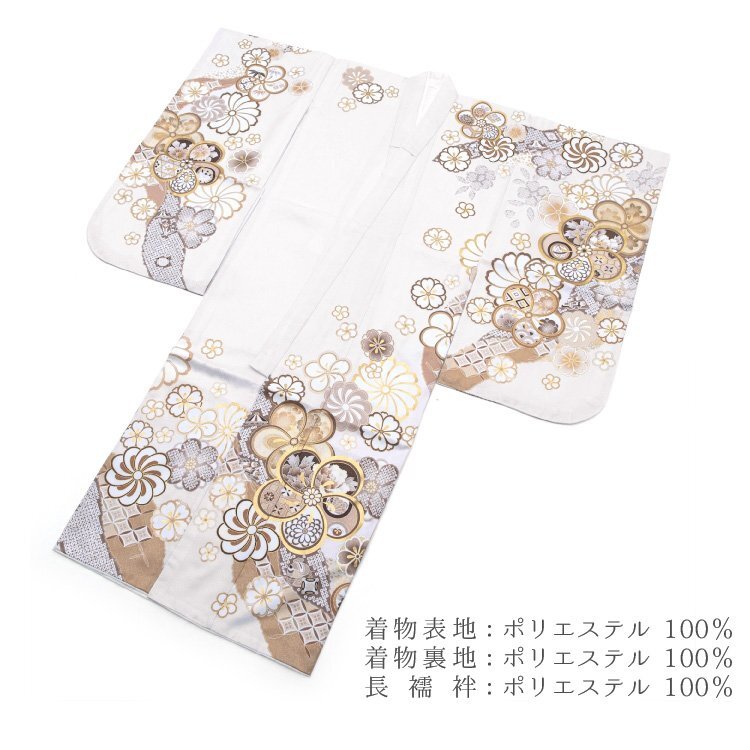| 素材 | 着物:ポリエステル 100% (裏地)ポリエステル 100% 長襦袢 : ポリエステル 100% |