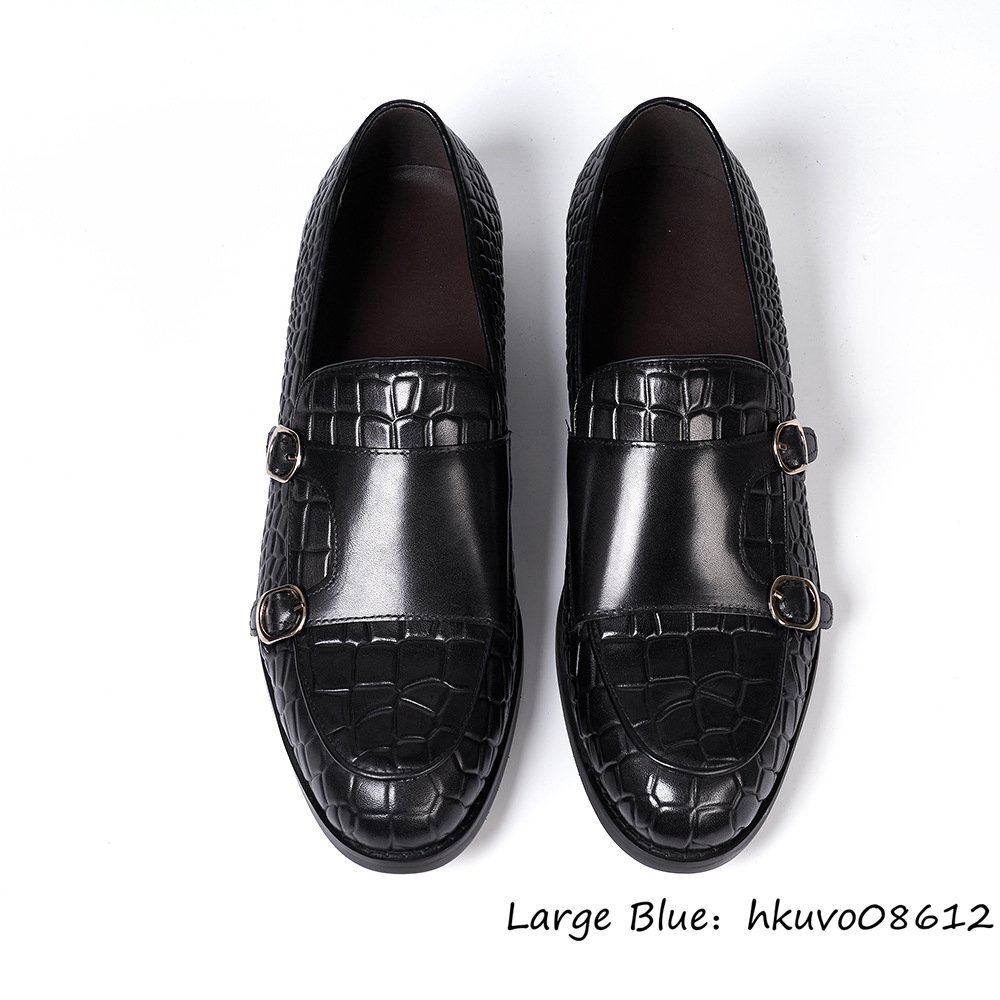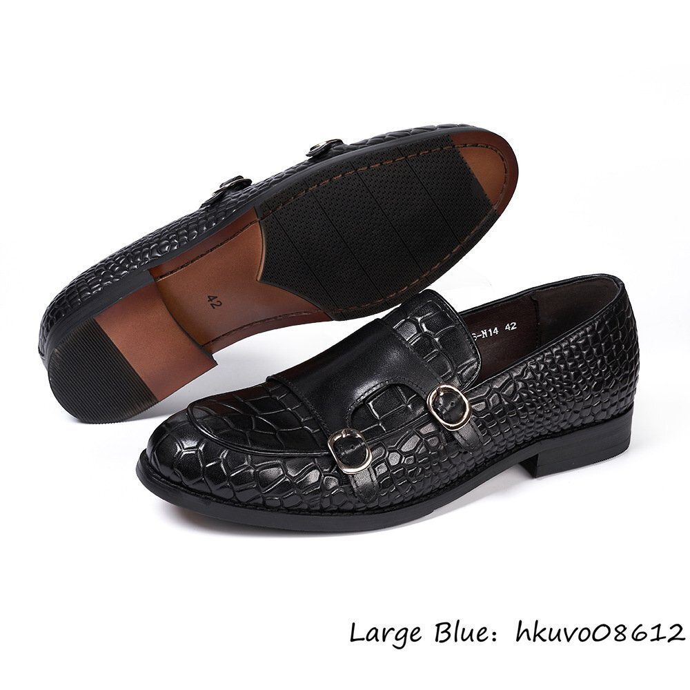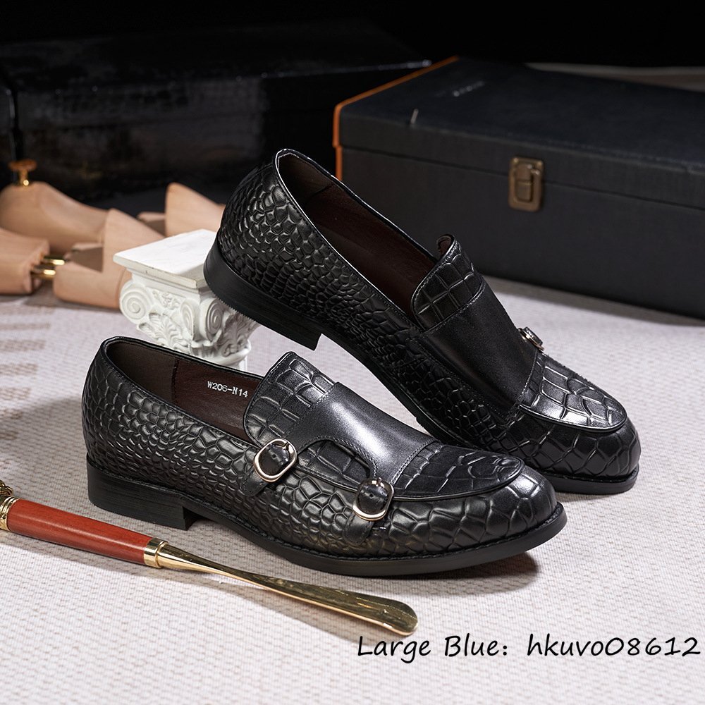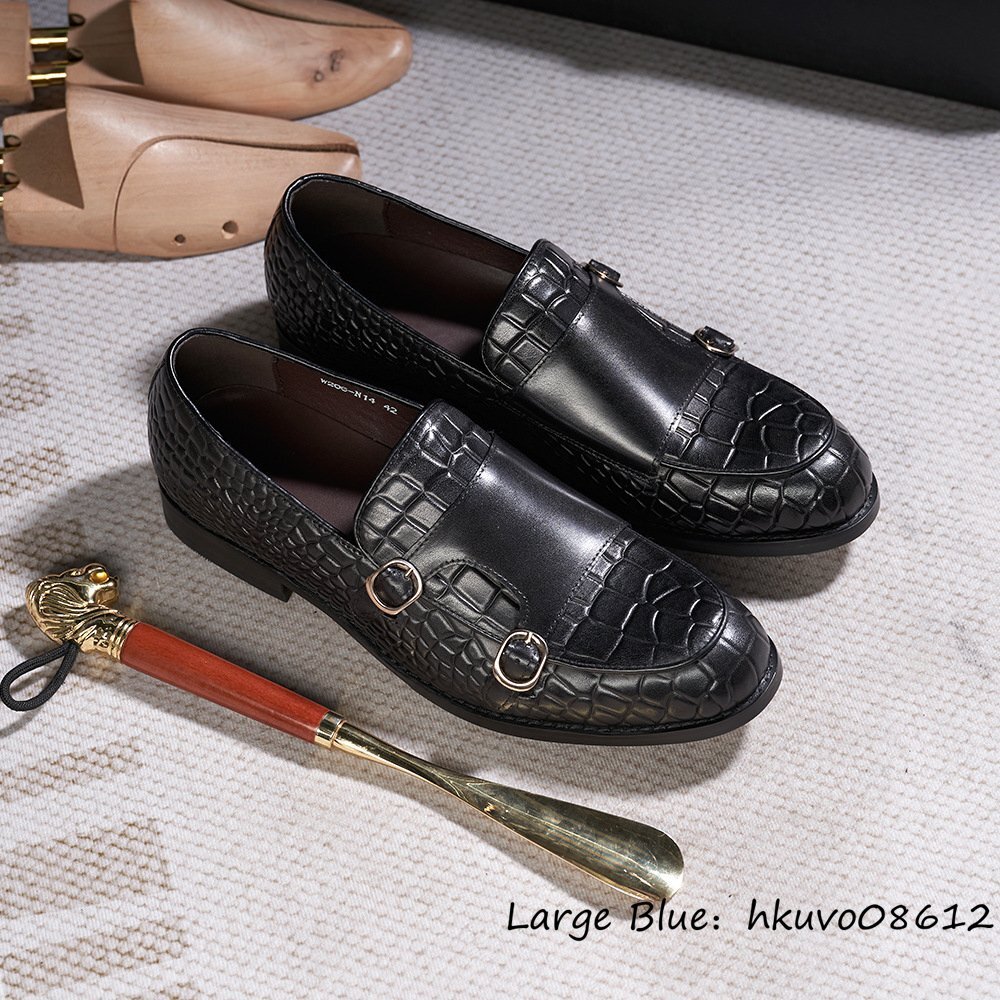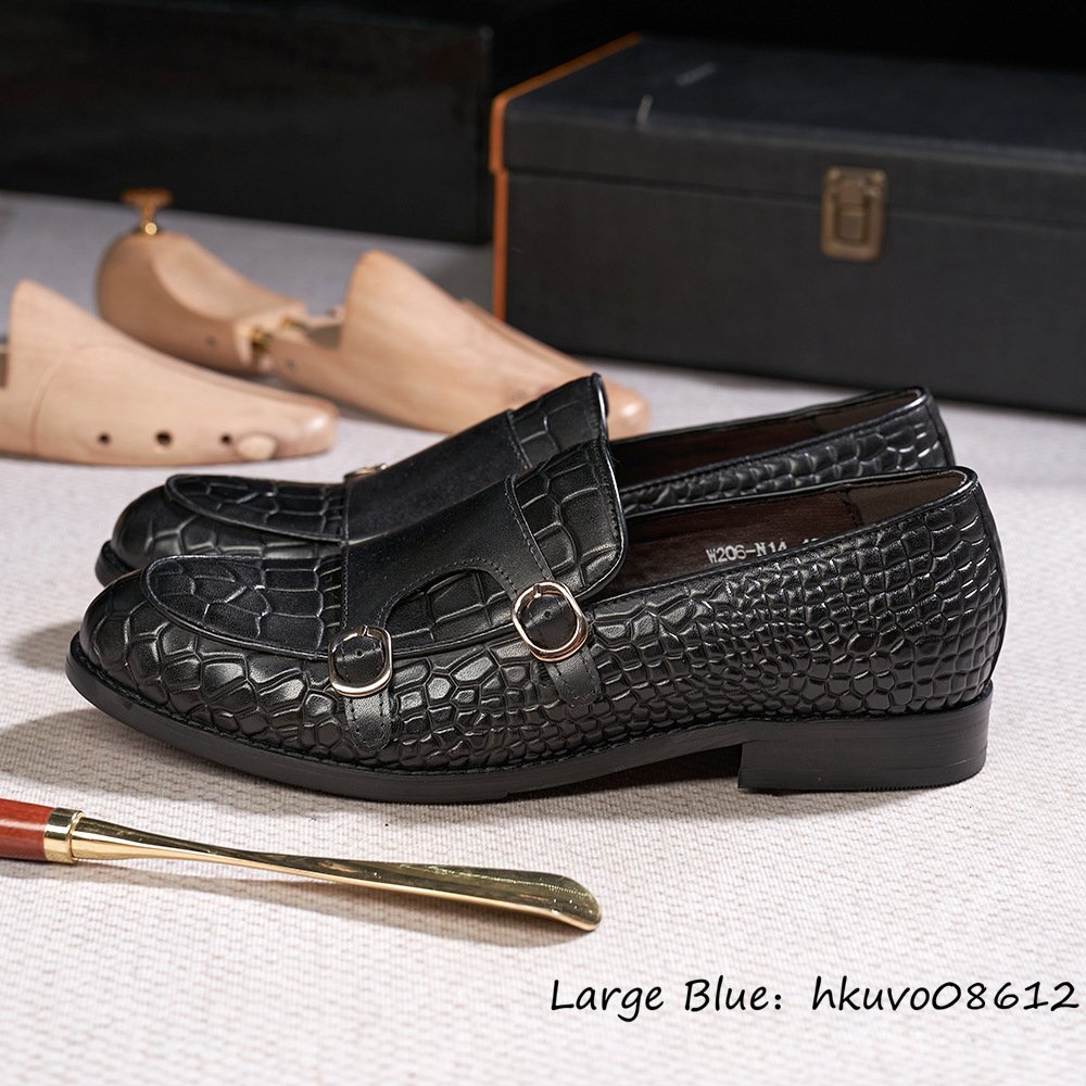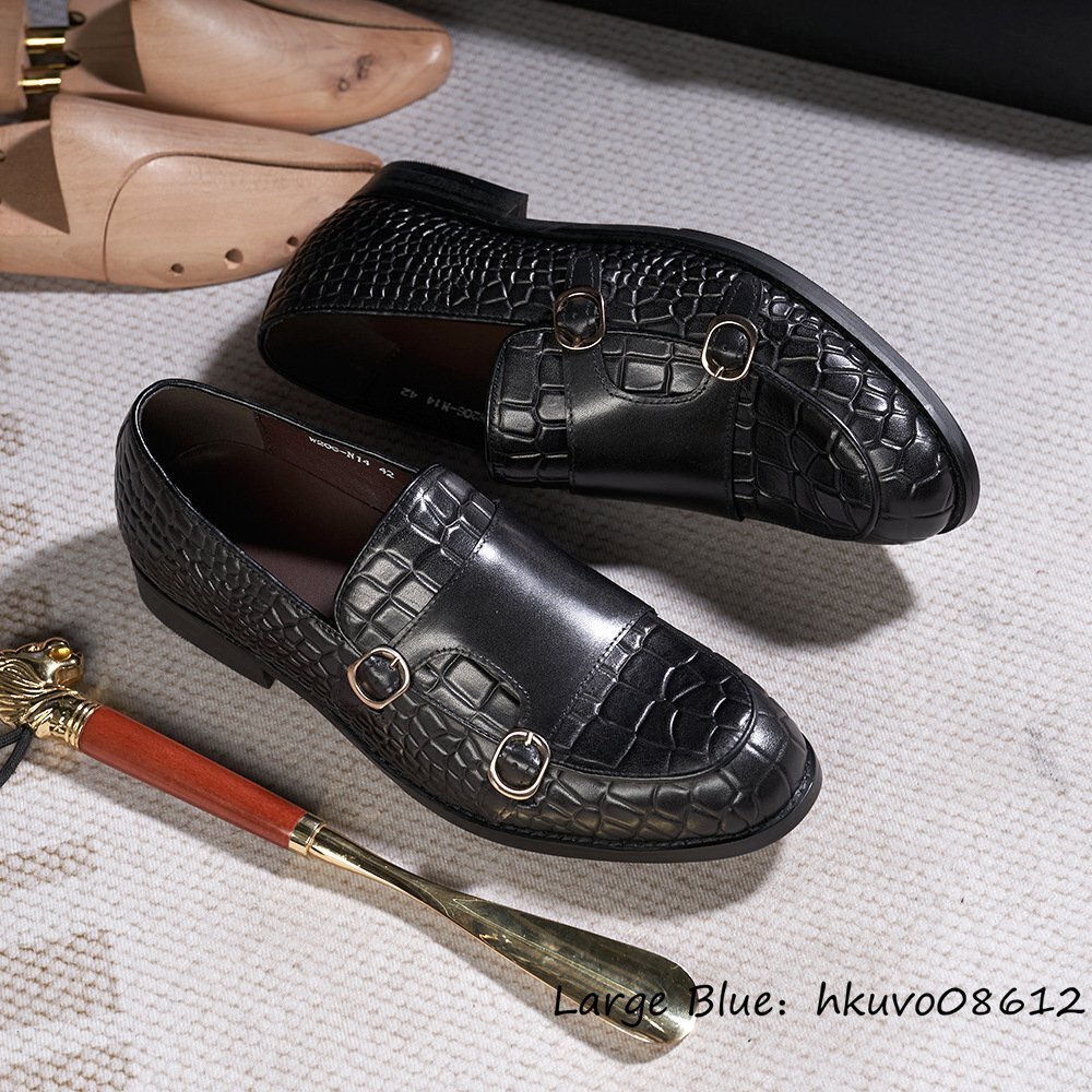 定価9万■超美品 鰐柄 ダブルモンクストラップ 本革 職人手作り ビジネスシューズ メンズ 高級牛革 紳士靴 革靴 宴会 結婚式 黒 24.5cm