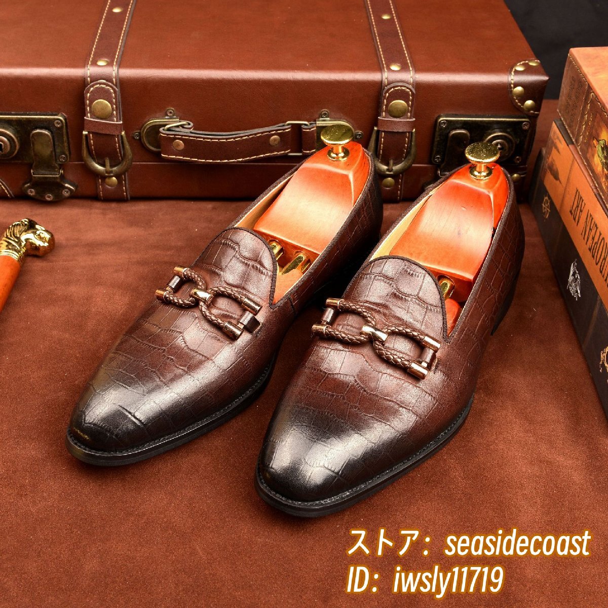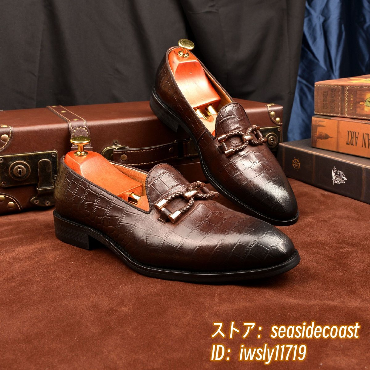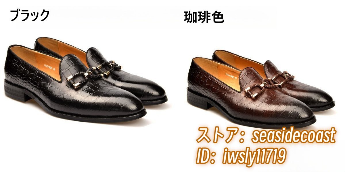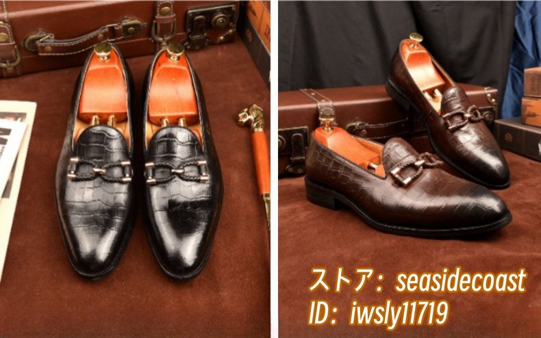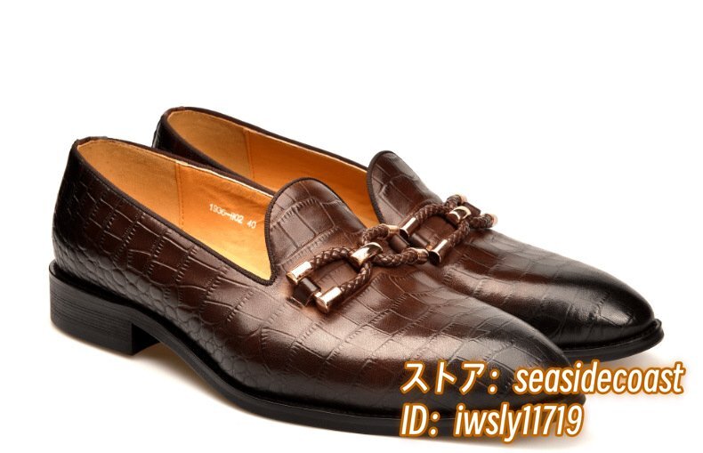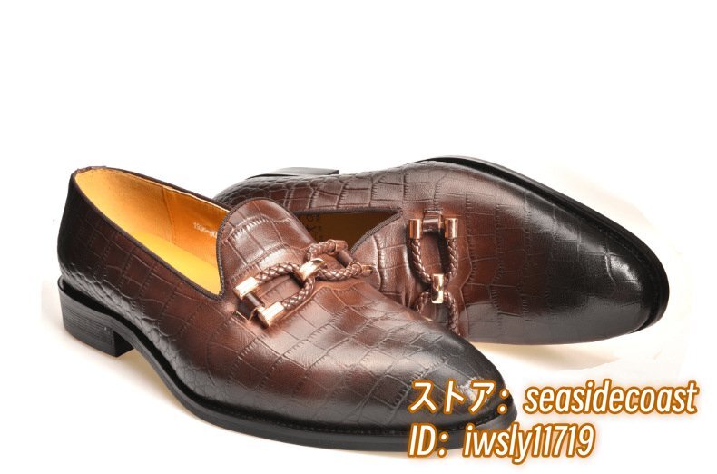 最高級◆牛革 レザーシューズ 本革 ローファー メンズ ビジネスシューズ 職人手作り 革靴 フォーマル 通勤靴 鰐柄 宴会 珈琲色 24.5cm