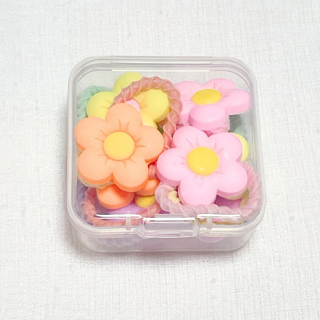 シリコン製のお花チャームが可愛い、ベビー向けヘアゴム10点セットまとめ売りです。