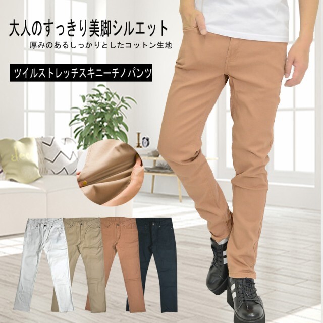 ストレッチ スキニーパンツ ストレッチ ヘビーツイル キレイめ メンズ テーパード メンズ 8002-9117 新品 ベージュ M