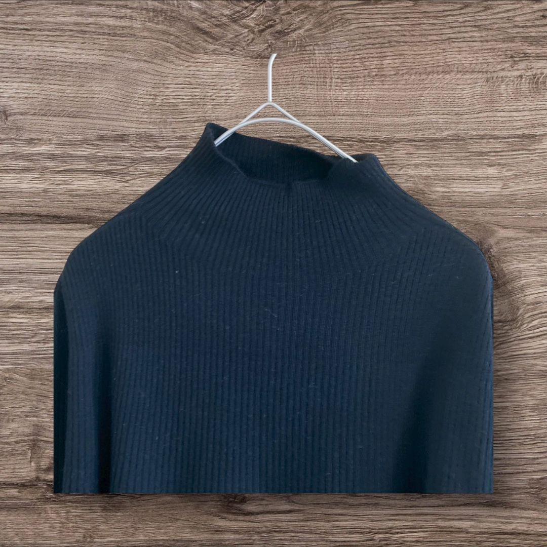 リブ編みデザインで伸縮性があり、体に程よくフィットするスリムシルエット。