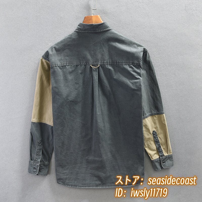 入手困難◆長袖シャツ メンズシャツ 切替 ワークシャツ 上質 アウター 個性 ミリタリージャケット ヴィンテージ ジャンバー グレー M