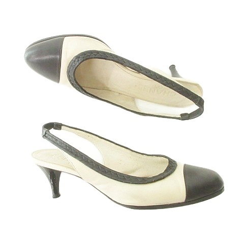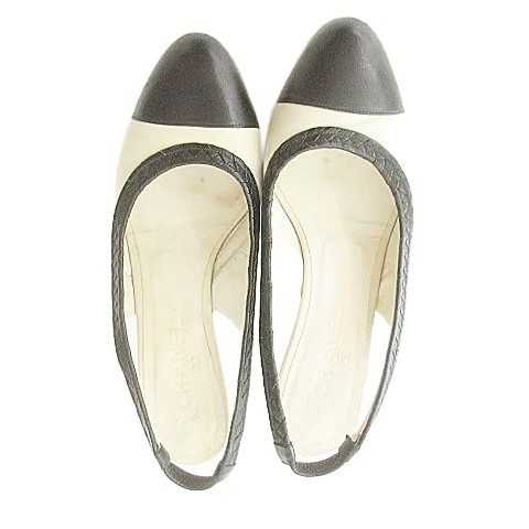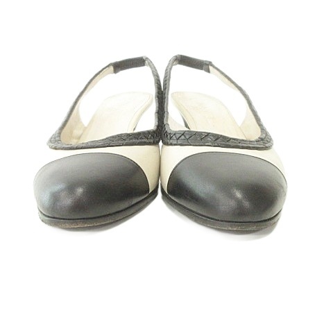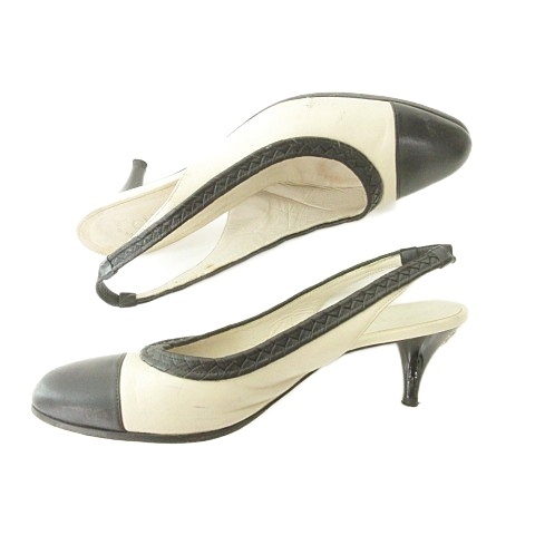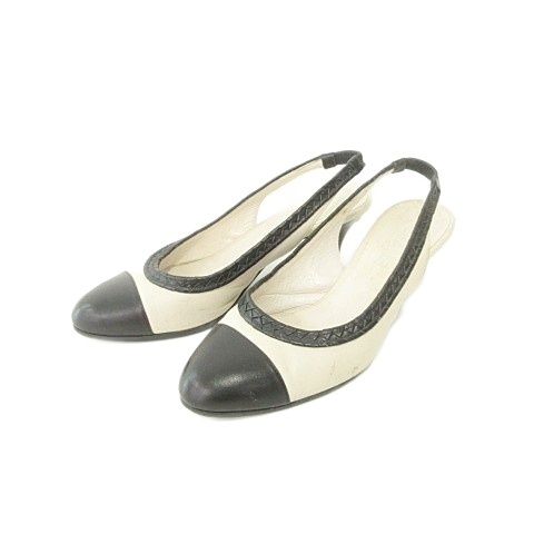シャネル CHANEL バイカラー パンプス ココマーク ヒール イタリア製 37 1/2 C アイボリー 黒 ブラック レディース