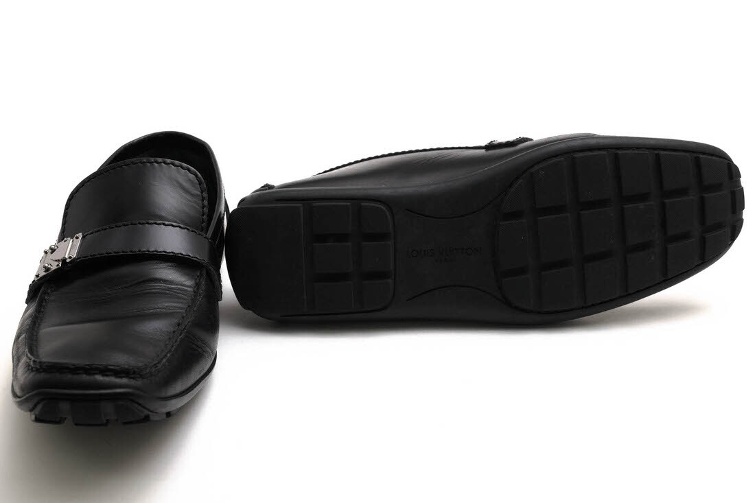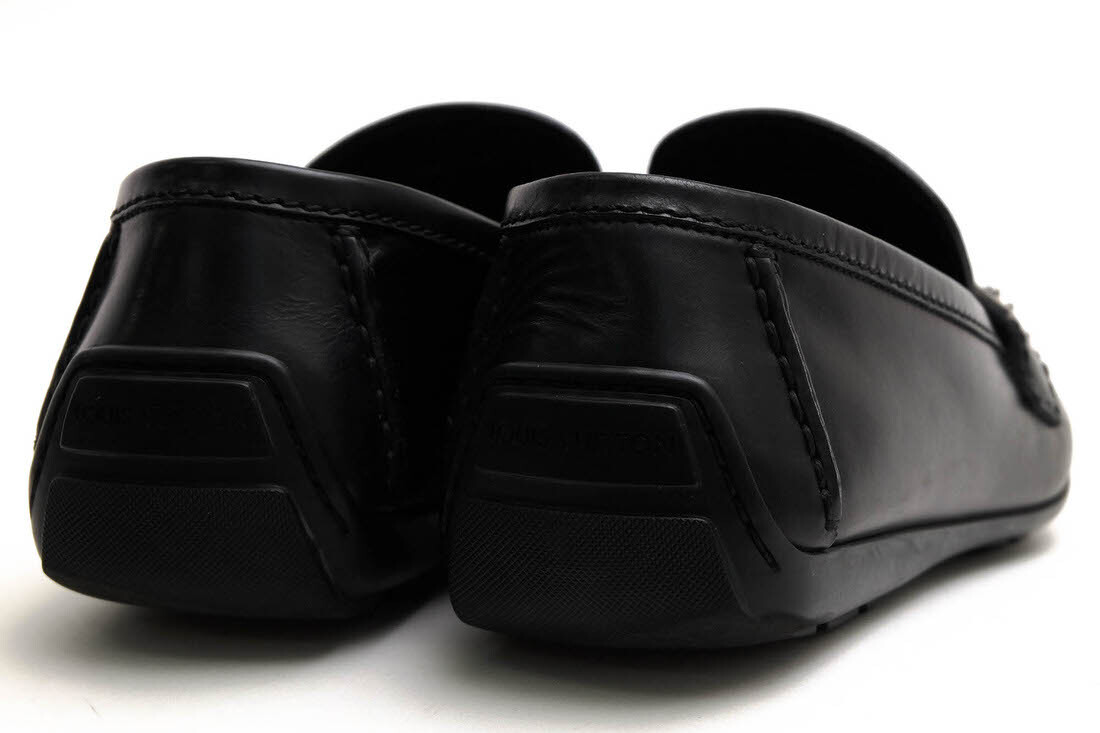 シンプルながら洗練されたデザインが特徴のLouis Vuittonのサイドストラップドライビングスリッポン。ややスクエアなトゥ先とシャープなラストが特徴で、シンプルなアッパーにドライビング仕様のソールを組み合わせ、季節を問わずオールシーズン利用できるモデルです。レザーライニングのインソールが快適な履き心地を提供します。 |