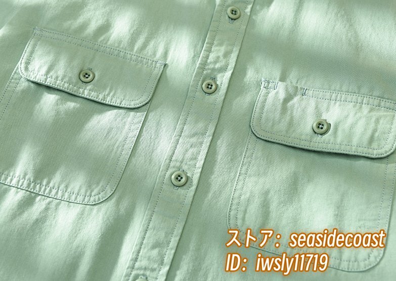 春新品特売☆メンズシャツ 長袖シャツ 無地シャツ ワークシャツ ミリタリー ジャケット 胸ポケット カジュアル 選択可 カーキ L