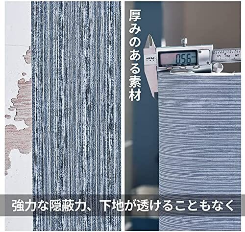 壁紙シール60cm×10m はがせる壁紙 厚みの強化 立体感 高級縞模様 防水 防汚 耐熱 リメイクシートDIY 装飾シート居間 寝室 店舗 壁 家具 (グレーブルー) 商品詳細 【寸法と材質】幅60cm×長10m、厚さ:約0.56mm高品質PVC素材(ポリ塩化ビニル)。