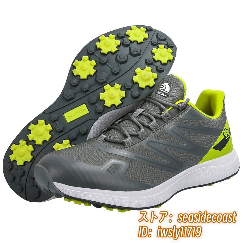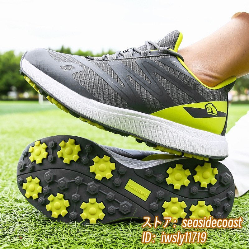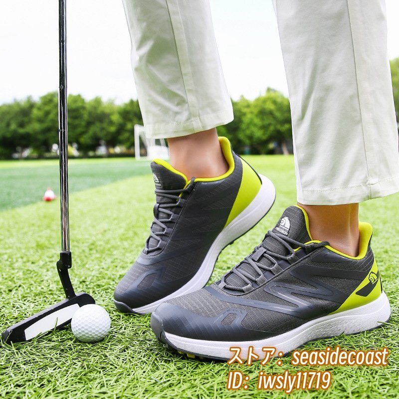 高級品■ゴルフシューズ 新品 スポーツシューズ 強いグリップ 運動靴 切替 メンズ 幅広 紳士 スニーカー 防滑 耐磨 通気性 グレー 24.5cm