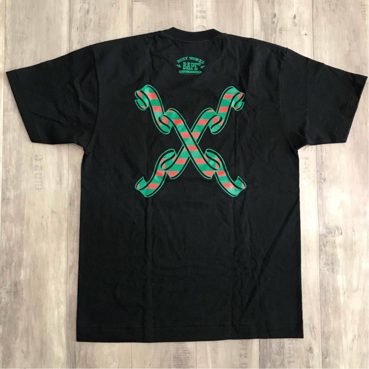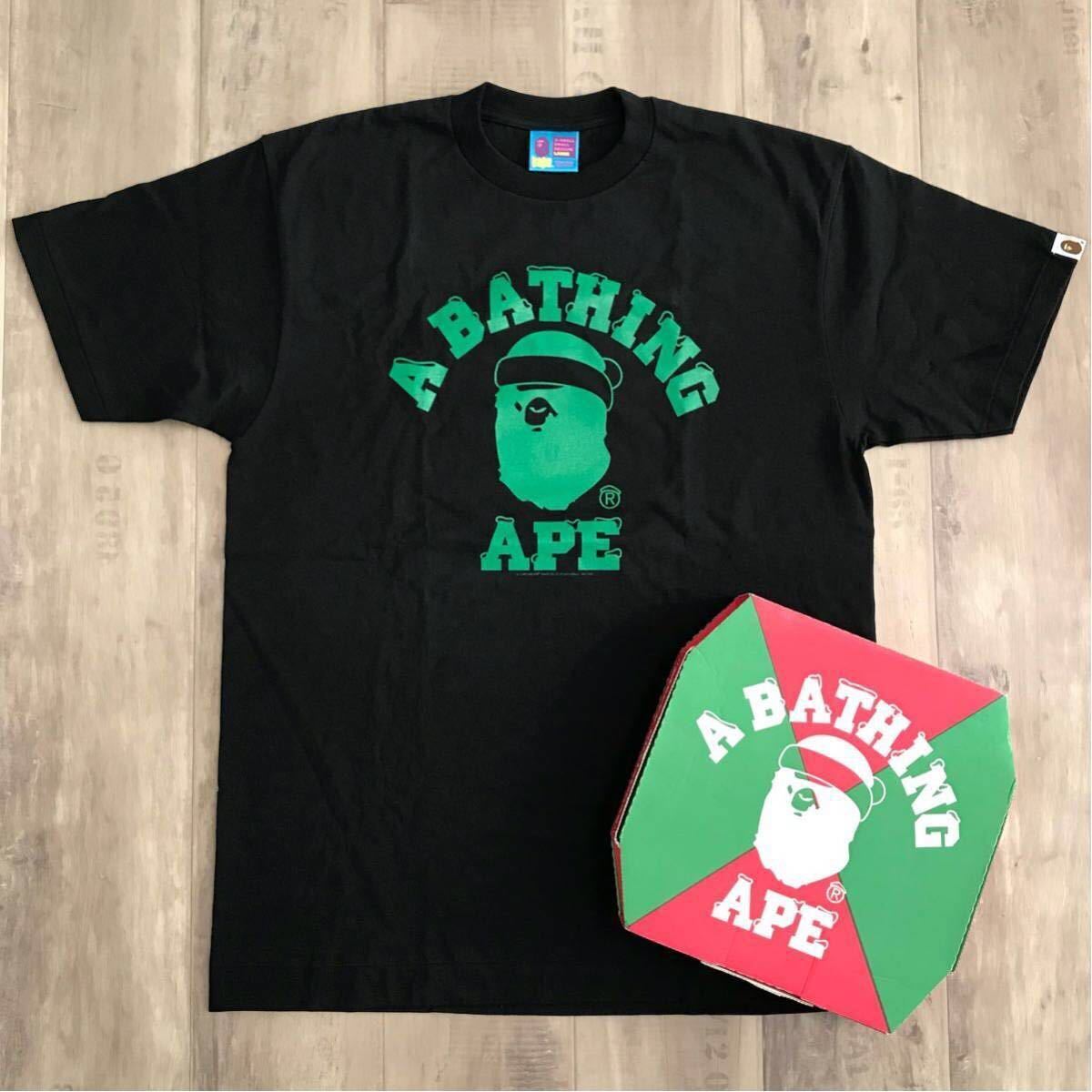a bathing ape pizza box クリスマス カレッジロゴ Tシャツ ブラック Lサイズ です★