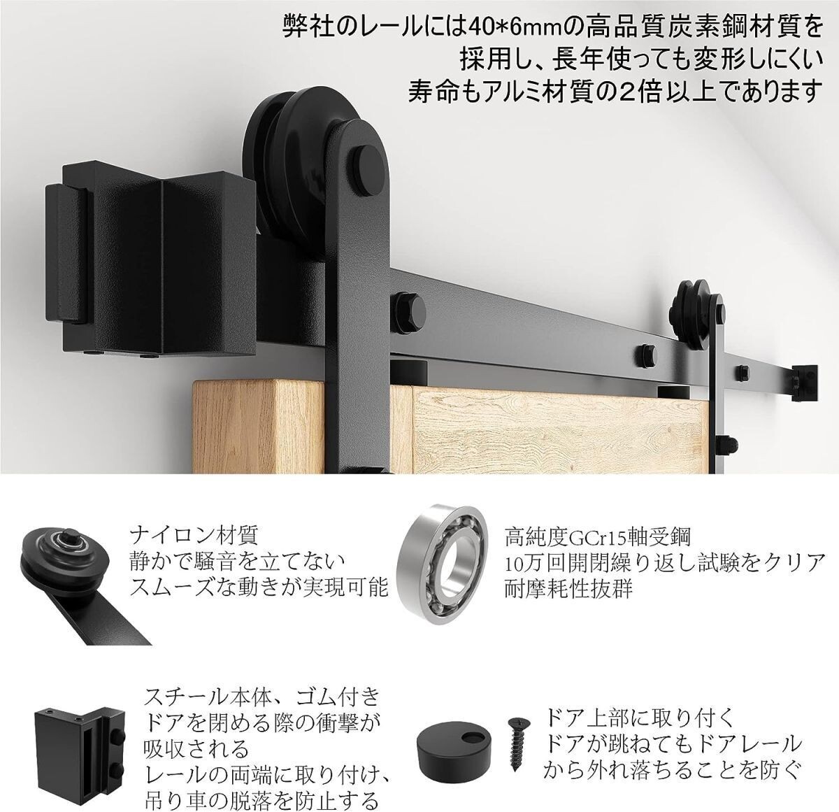 ZEKOO 吊り引き戸レール バーンドア金具 引き扉 6 FT (1.83メートル) トラックレール 引き違い 室内 リフォームドア ソフトクローザー DIY 建具金物 2段式 シングルドア 商品詳細 【高品質炭素鋼素材採用】:普通のアルミ材引き戸レールより強度、耐摩耗性、靭性などの重要な属性が全面的オーバーします、長年使っても変形しにくいし、寿命もアルミ材質の2倍以上であります。