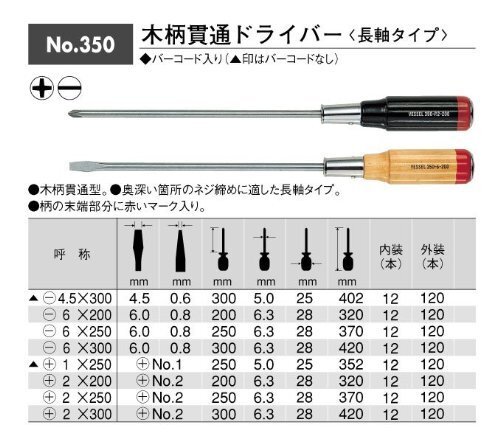 | ※倉庫に長い間眠っていました。小箱には入っていましたが 若干の色落ちや汚れがあるかもしれません。 ※もちろん未使用品です ベッセル社製の長柄のプラスドライバーです。 ◎ドライバー部分の長さは250㎜で全長で370㎜となります。 ◎貫通タイプです。 | ||