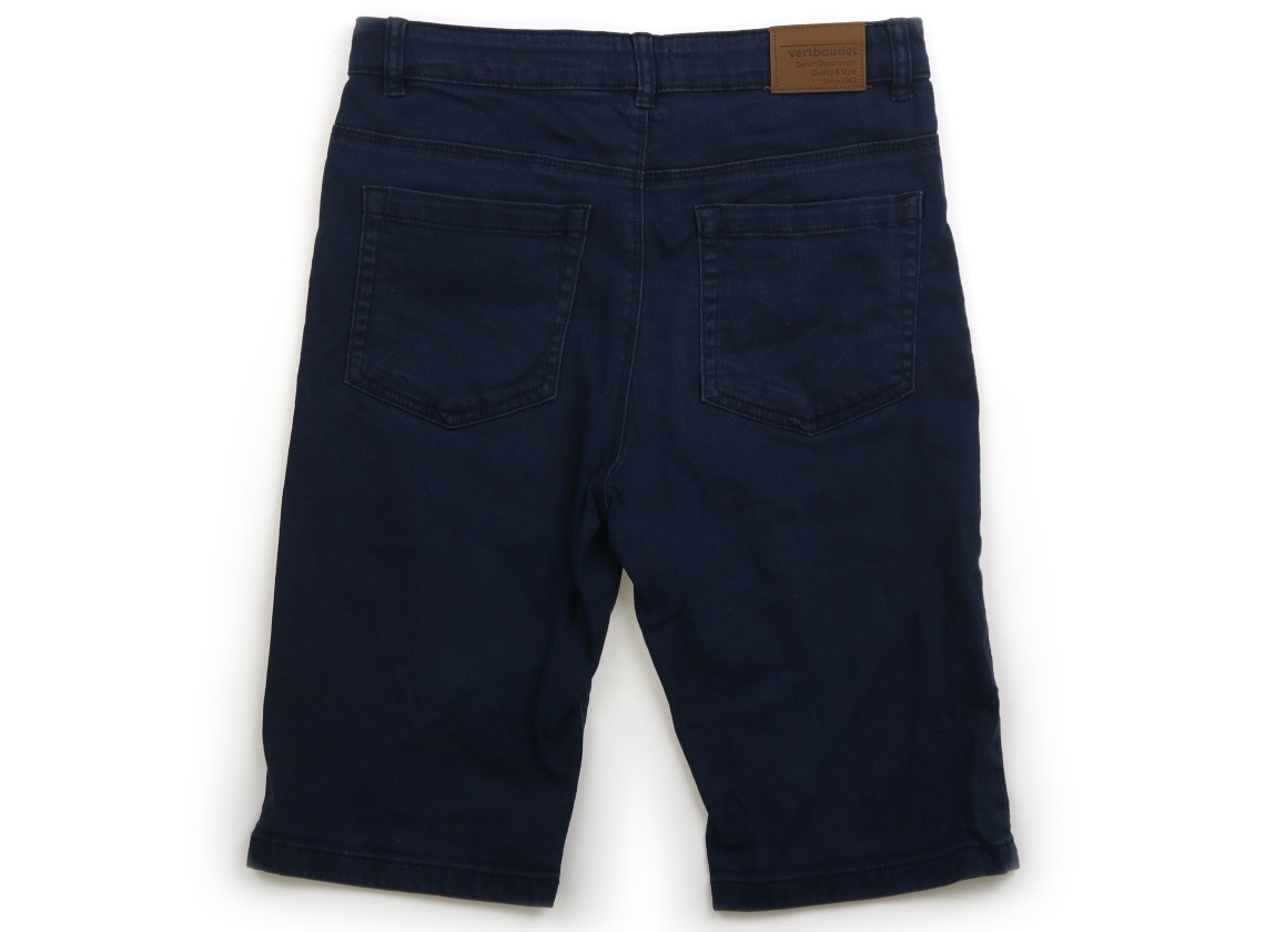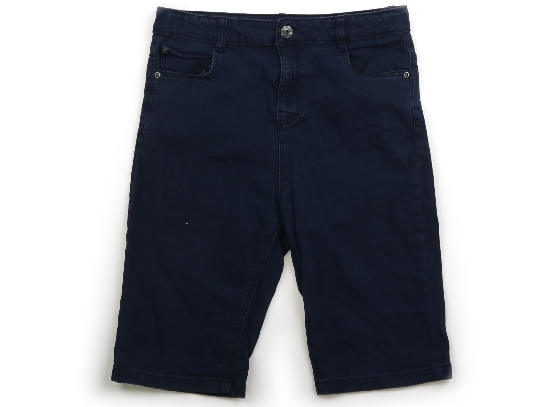 152cmサイズ表記。ウエストはサイズ調整ゴムが付いていて、前ファスナー開き。薄いデニム調生地です。全体に色褪せあり。