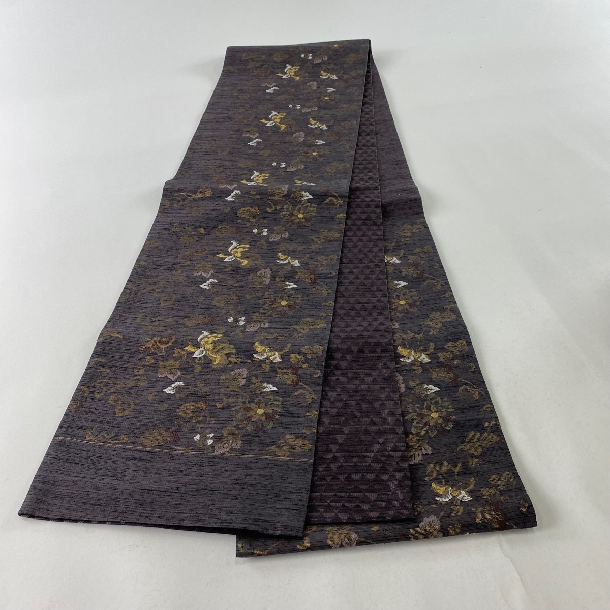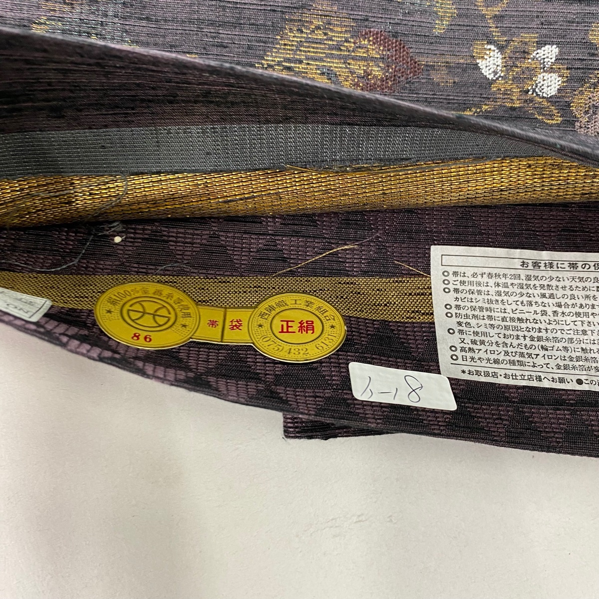 袋帯 美品 秀品 証紙 花唐草 金糸 箔 濃紫 六通 正絹 【中古】 |