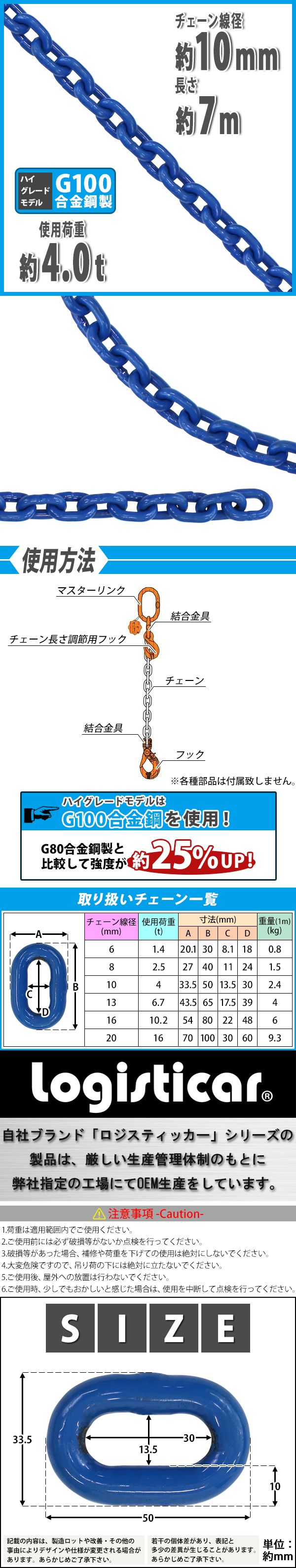 | 商品名 | 送料無料 チェーン 線径約10mm 使用荷重約4t 約4.0t 約4000kg 約7m G100 ハイグレードモデル 鎖 くさり 吊り具 チェーンスリング スリングチェーン リンクチェーン チェイン 金具 クレーン ホイスト 玉掛け 吊り上げ 運搬 建築 土木 鉄工 運輸 造船 青 g100bchain10mm7m |