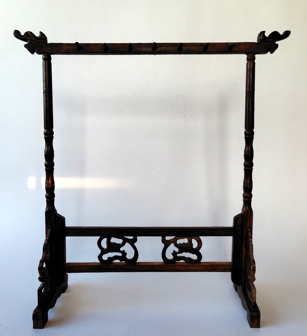 鉄刀木 タガヤサン 筆掛け 書道具 高さ約41cm