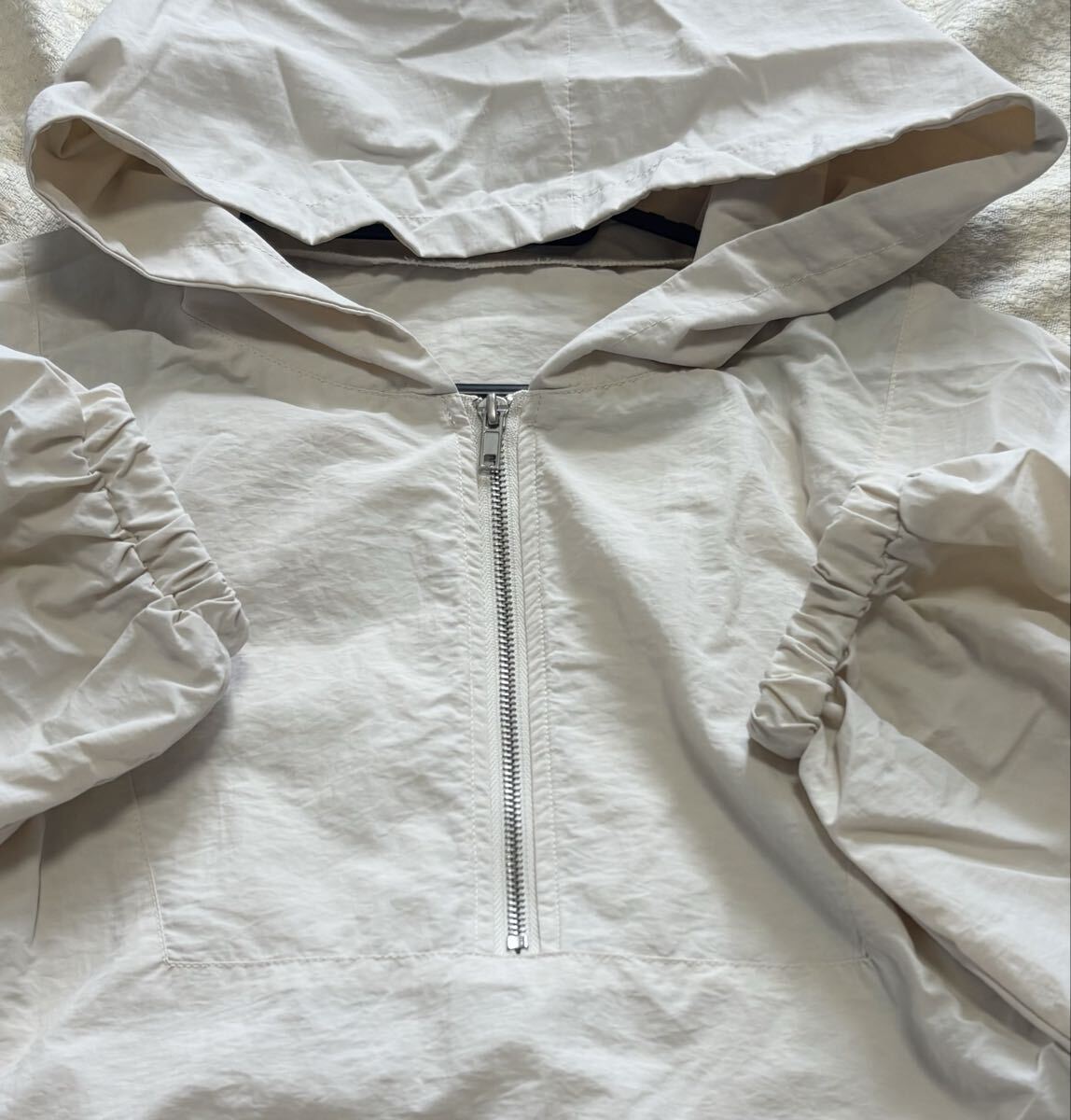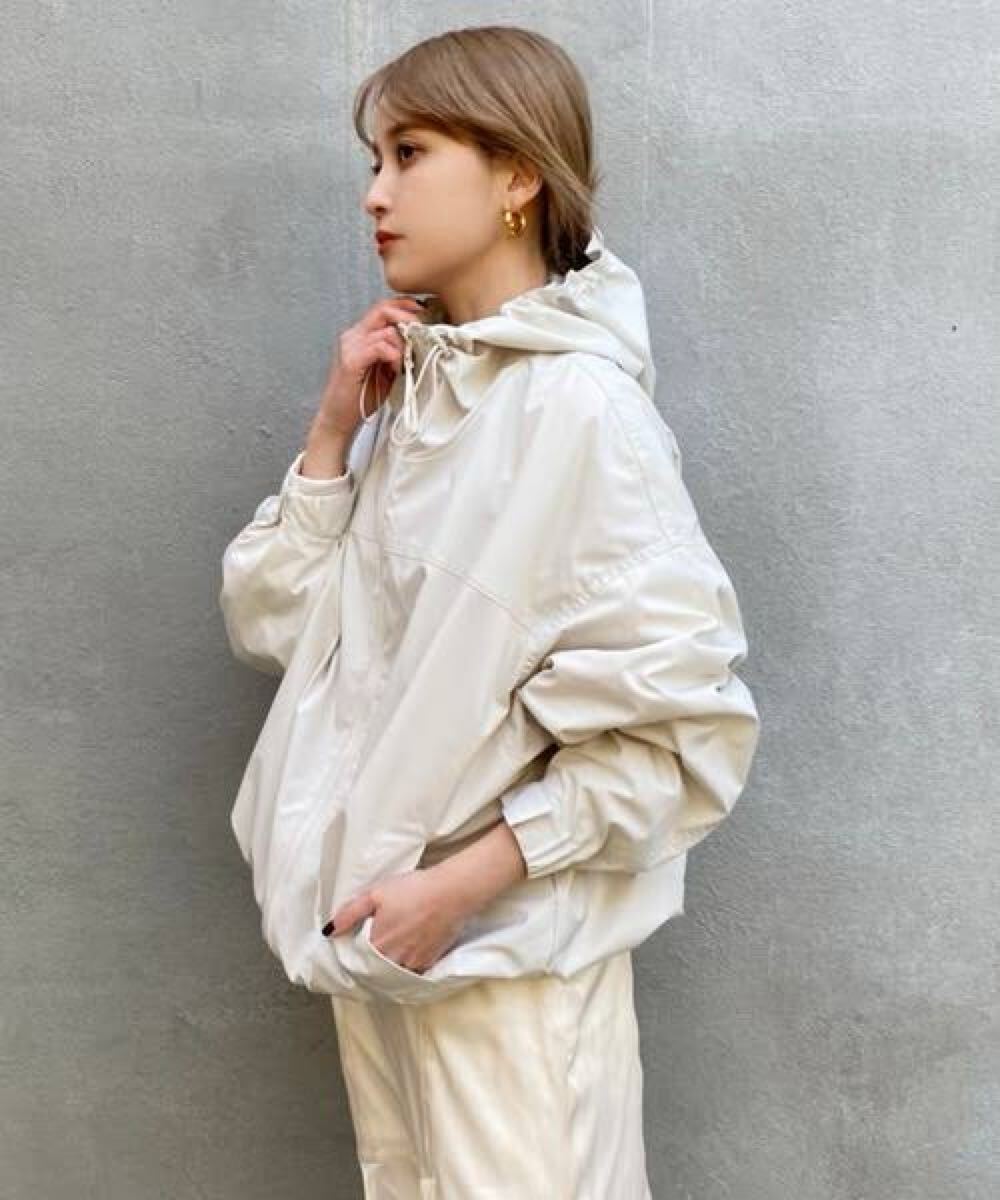 アウターとしてもトップスとしても使えるアノラックパーカーサッと羽織るだけでトレンドライクな印象に。
