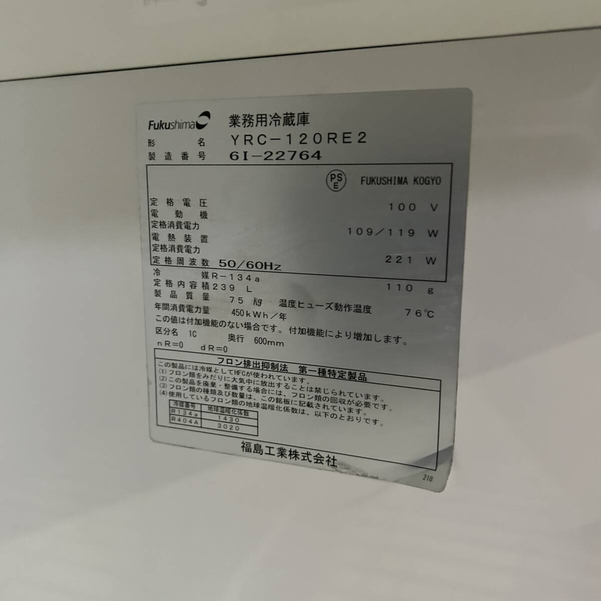CI8★フクシマ★ 2016年製 台下冷蔵庫 業務用冷蔵庫 YRC-120RE2 業務用 厨房用