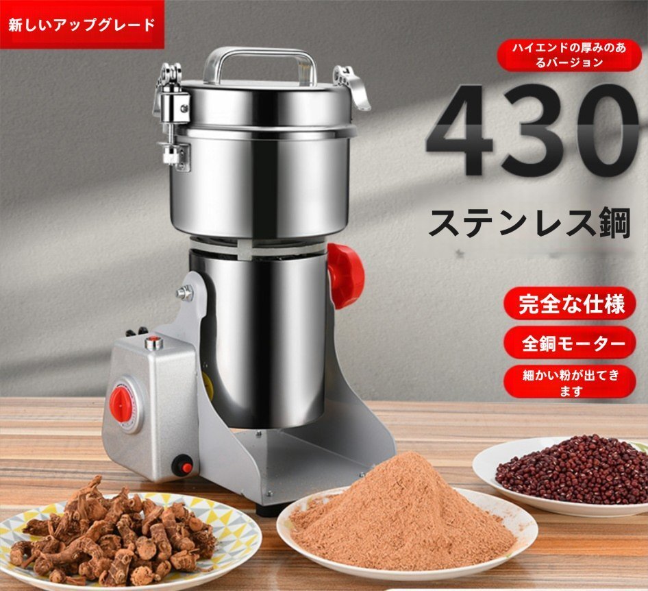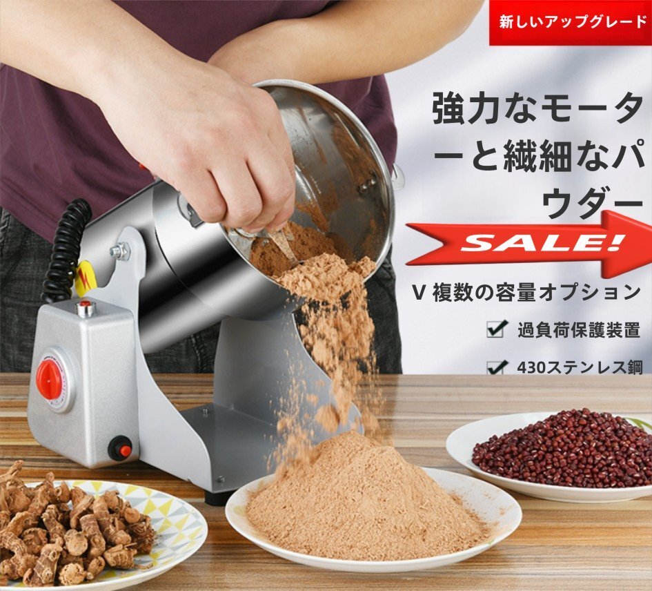 家庭用 業務用 電動製粉機 ハイスピードミル コンパクト 粉砕機 800g 小型 電動ミルスパイス 穀物粉砕機 米粉 小麦 生薬 スパイス粉