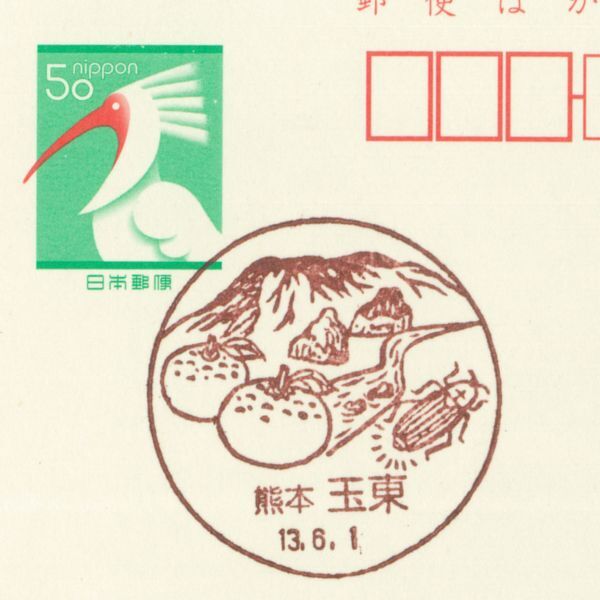 風景印☆初日☆熊本・玉東・H13.6.1・ホタル