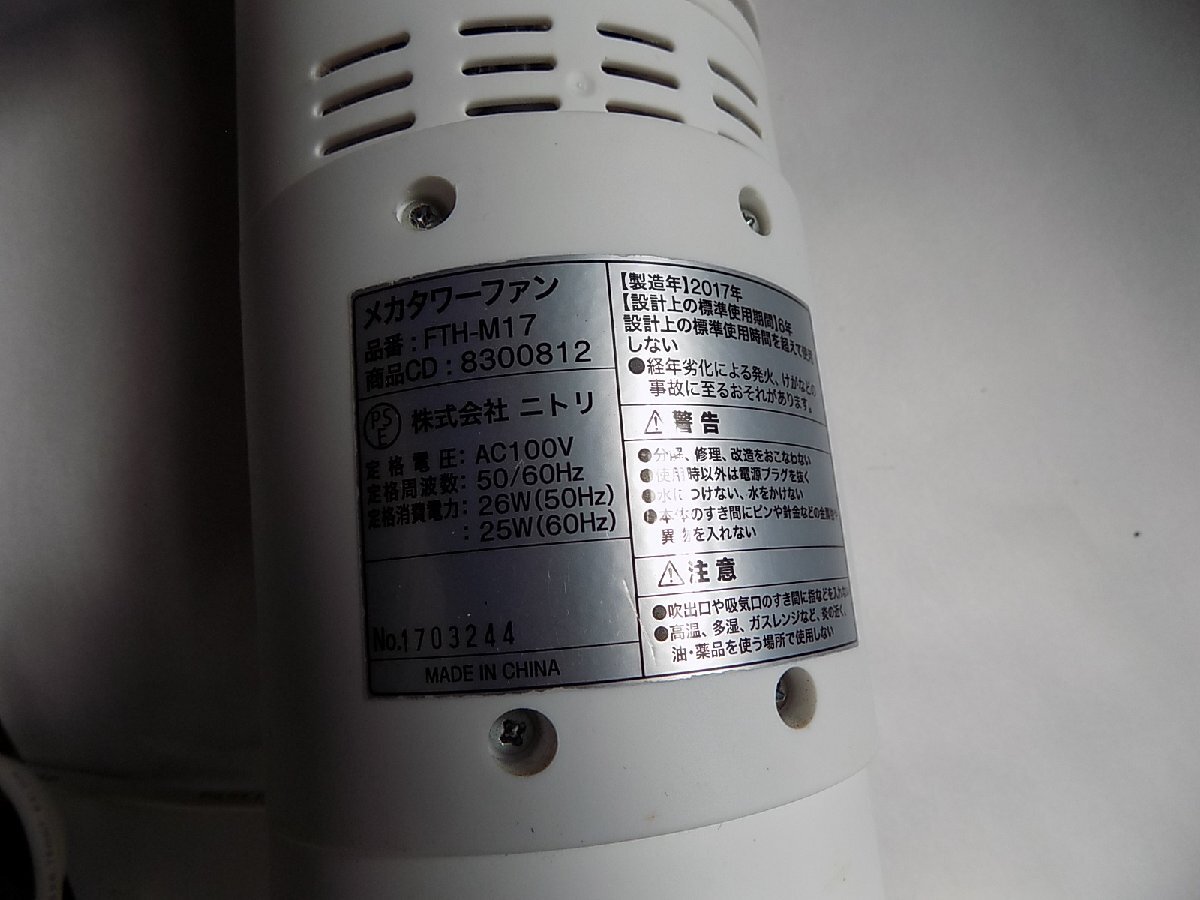 ニトリ ネガタワーファン FTH-M17