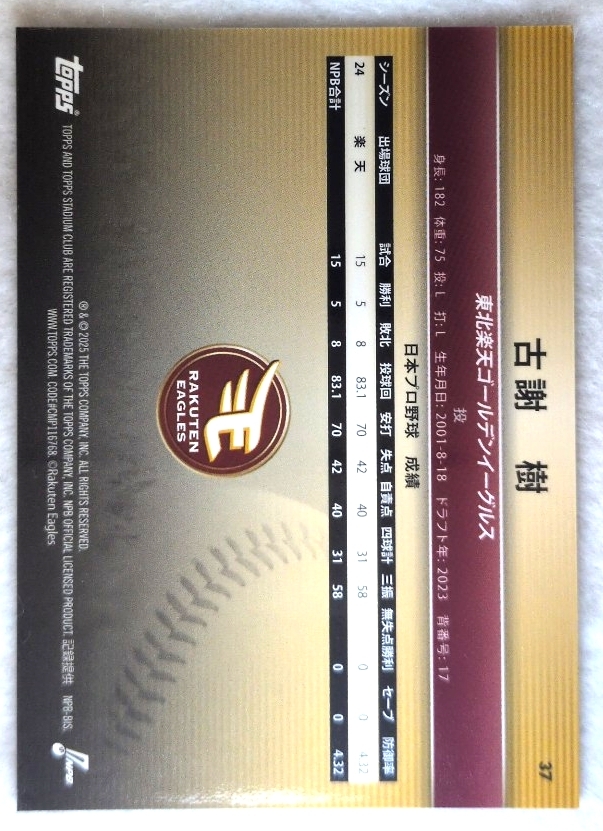 ★150枚限定★ 古謝 樹 埼玉西武ライオンズ 4/150 TOPPS STADIUM CLUB 2025